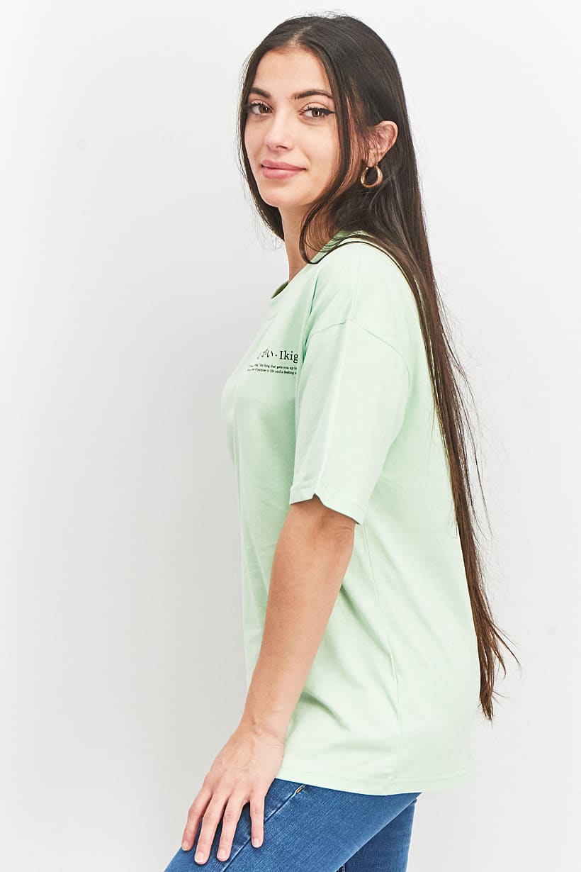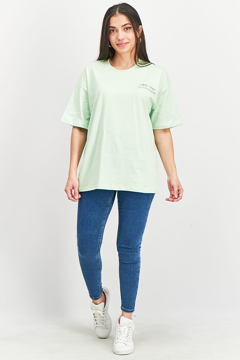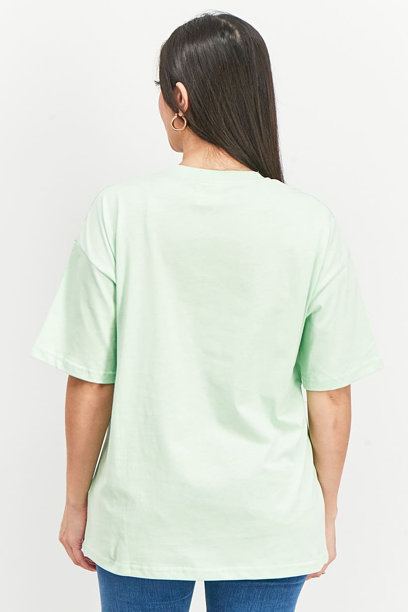| sub_Categories | Women Clothing, Tops & Tees, women oversized fit short sleeve graphic top pastel green |