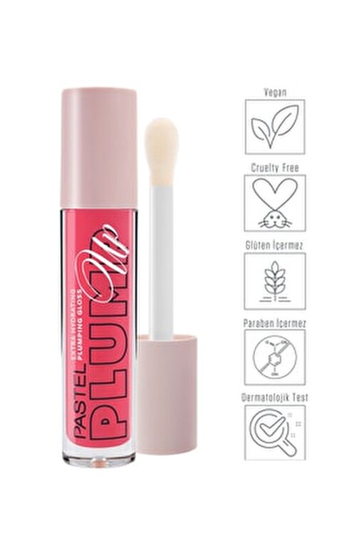 Instant plumping lip gloss Pastel Plump-Up lets you get fuller lips in minutes with menthol and spice ingredients. Thanks to Aleo vera and hyalironic acid, it offers intense moisturizing effect. With its soft structure and large applicator, Pastel Plump-Up Lip Gloss, which offers easy application, you will have more vibrant lips with its light tinting sparkling structure. Cruelty free is vegan and dermatologically tested. Paraben and gluten free. 5.3 ml
