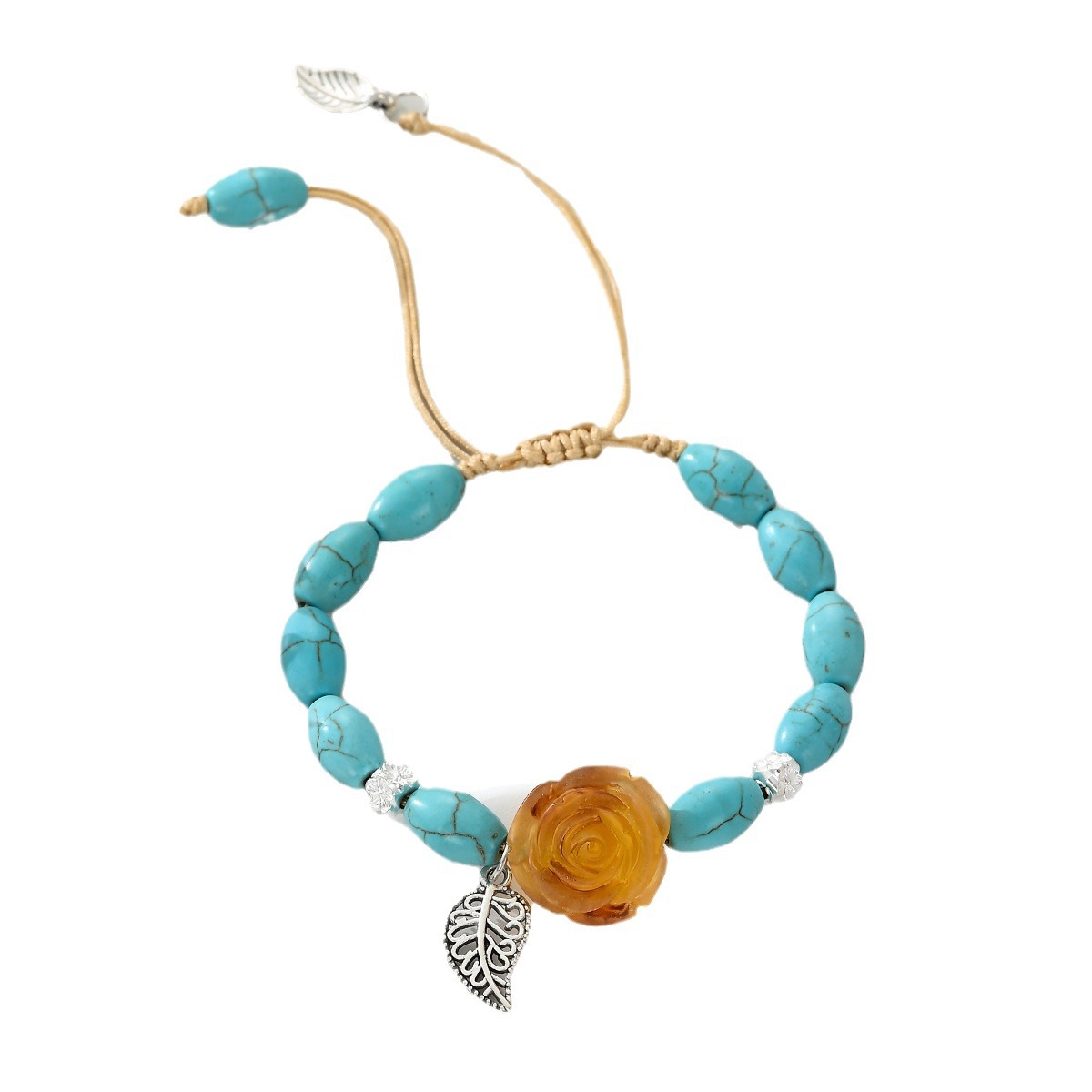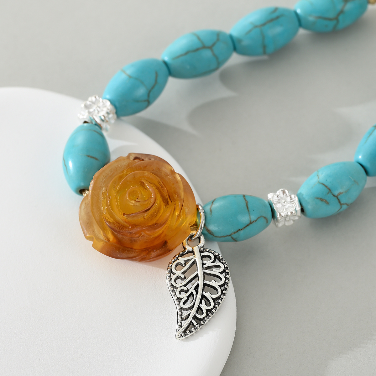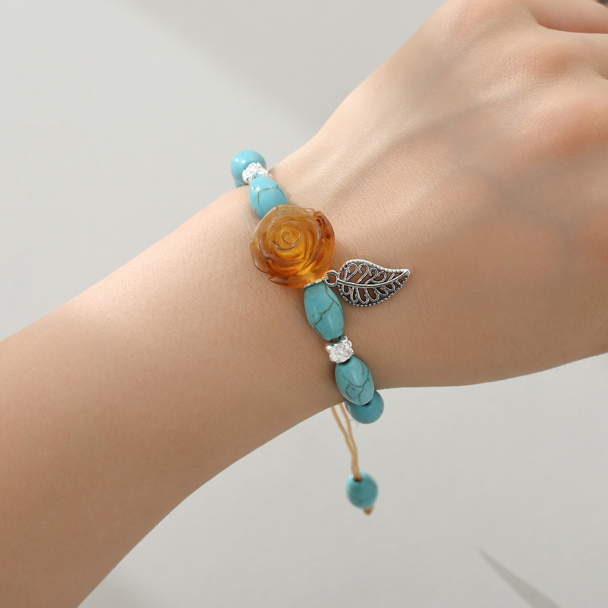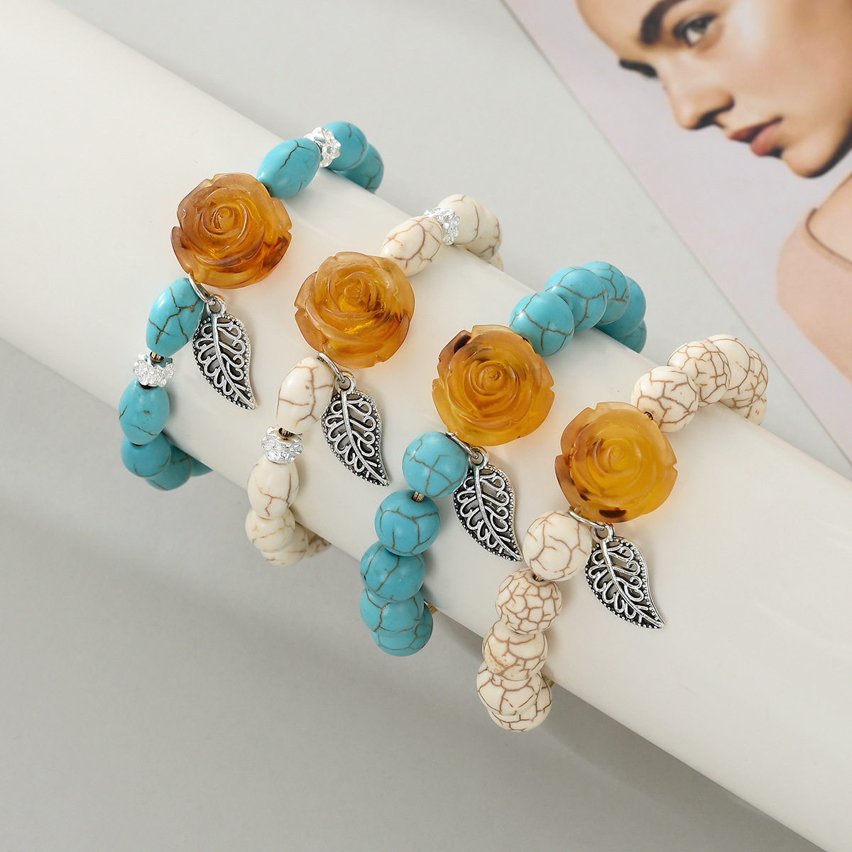 | nameOriginal | Pastoral Style Smudged Rose Bracelet Silver Leaf Natural Turquoise Bracelet Women's Beaded Bracelet Cross-border |