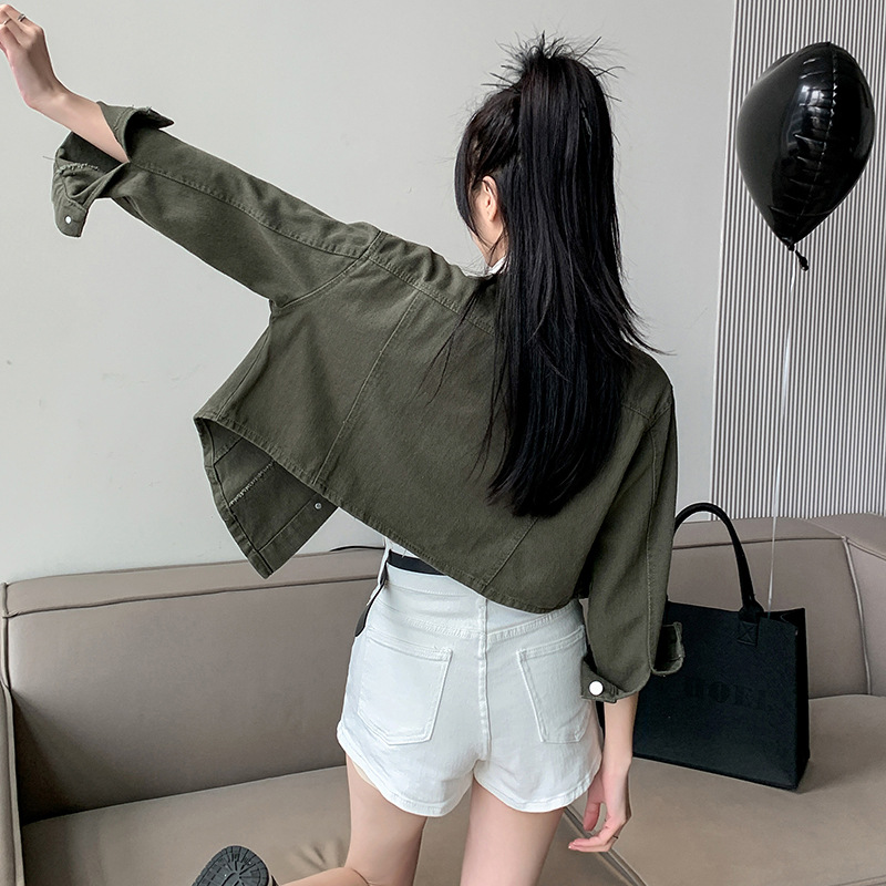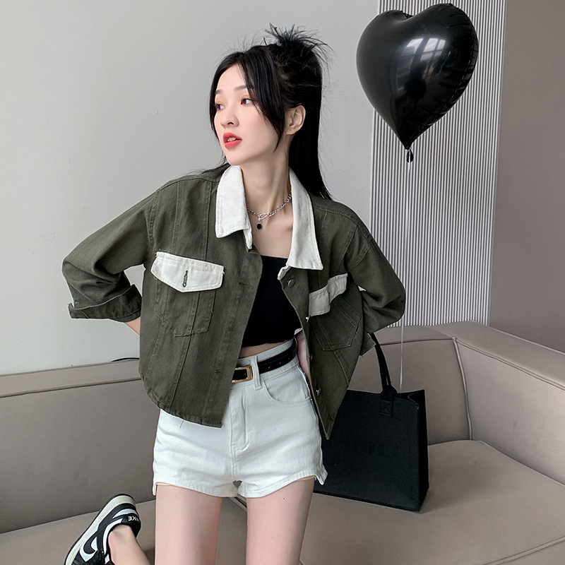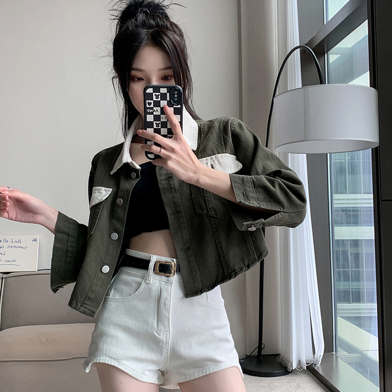 Patchwork short coat for women Denim Spring and Autumn 2023 new Korean style loose design sense niche jacket cardigan top