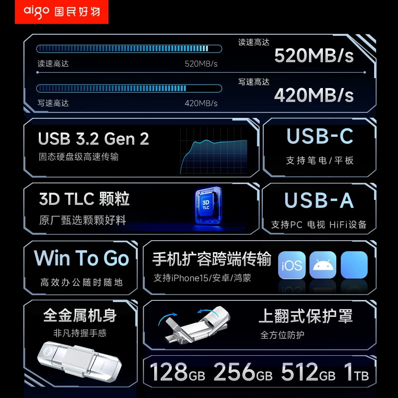 | nameOriginal | Patriot solid-state U disk Typec mobile phone U disk computer dual-use genuine U disk large capacity 128G1T genuine 393 |