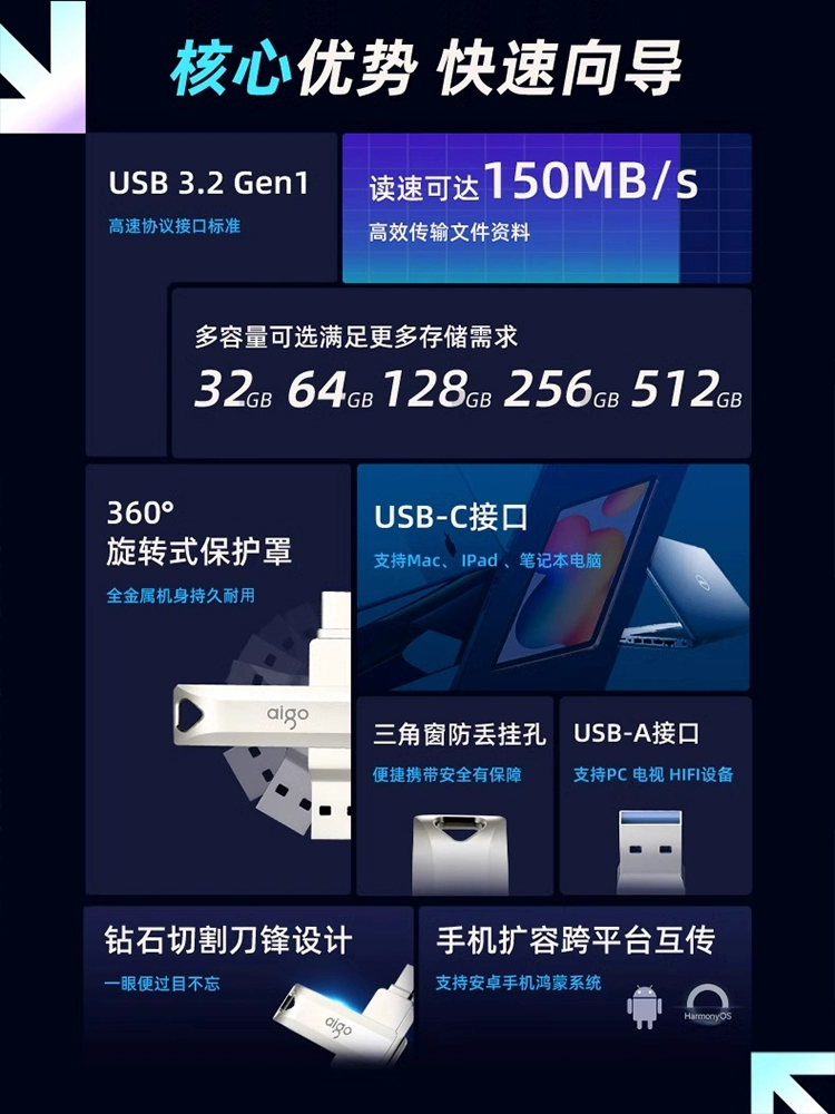 Patriot dual interface Typec mobile phone U disk 128G large capacity USB mobile phone and computer dual-use official flagship store