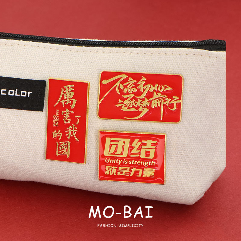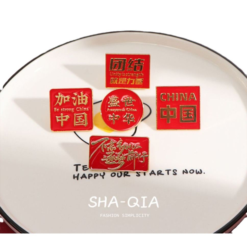 | nameOriginal | Patriotic blessing words inspirational unity refueling Chinese brooch metal badge student bag pin badge jewelry |