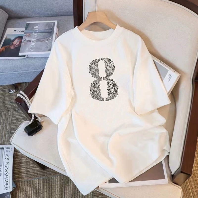 Pattern hot diamond numbers loose textured short-sleeved summer dress