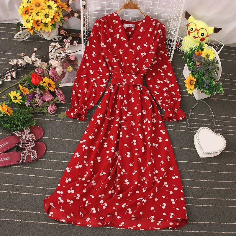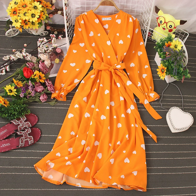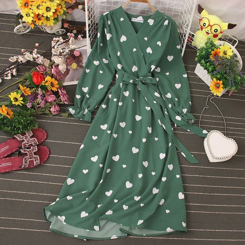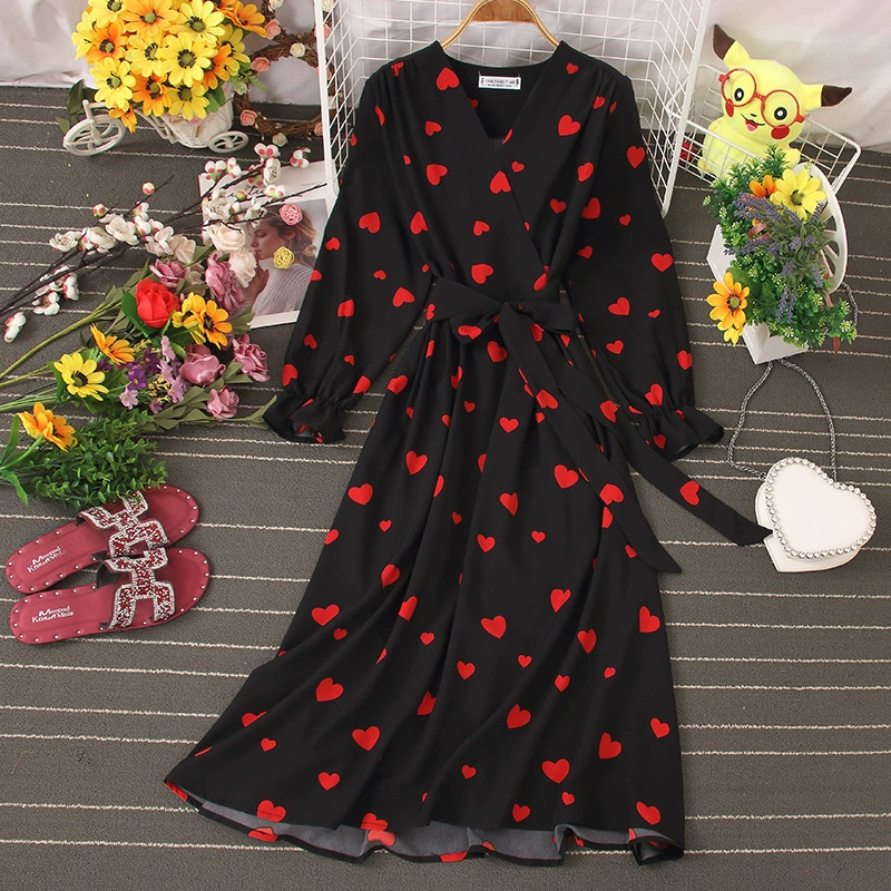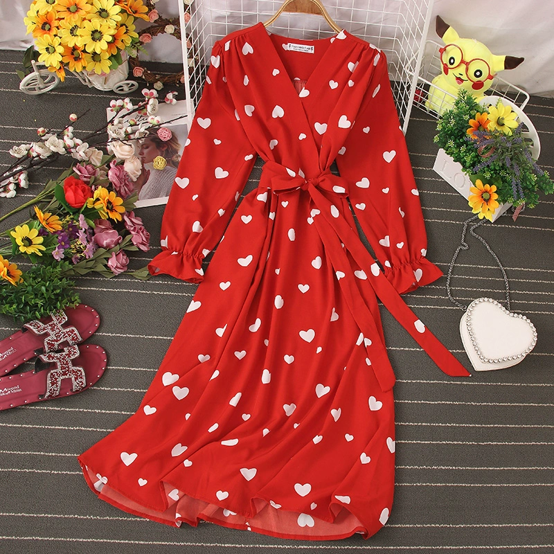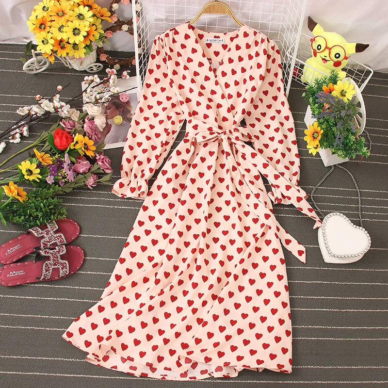 | nameOriginal | Pattern retro love V-neck temperament swing dress |