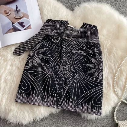 | nameOriginal | Patterned Autumn Korean Style Star Belt A-Line Skirt with Hot Diamonds |