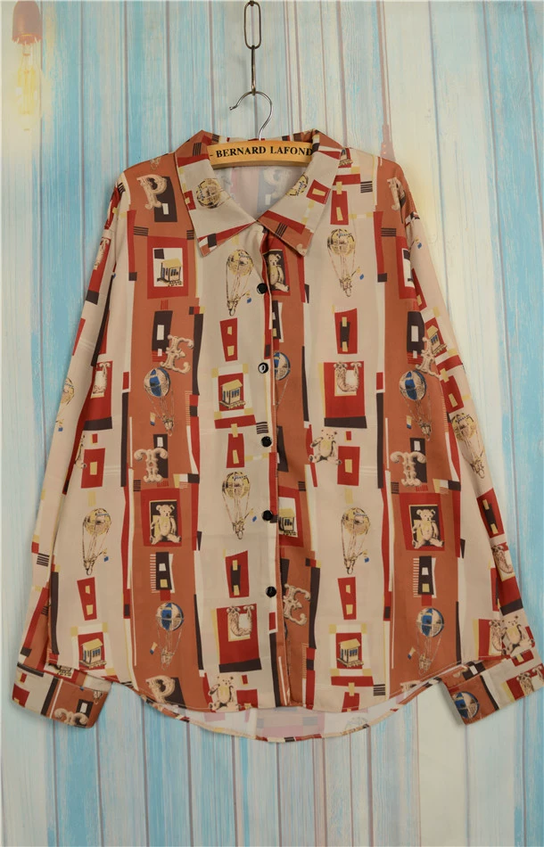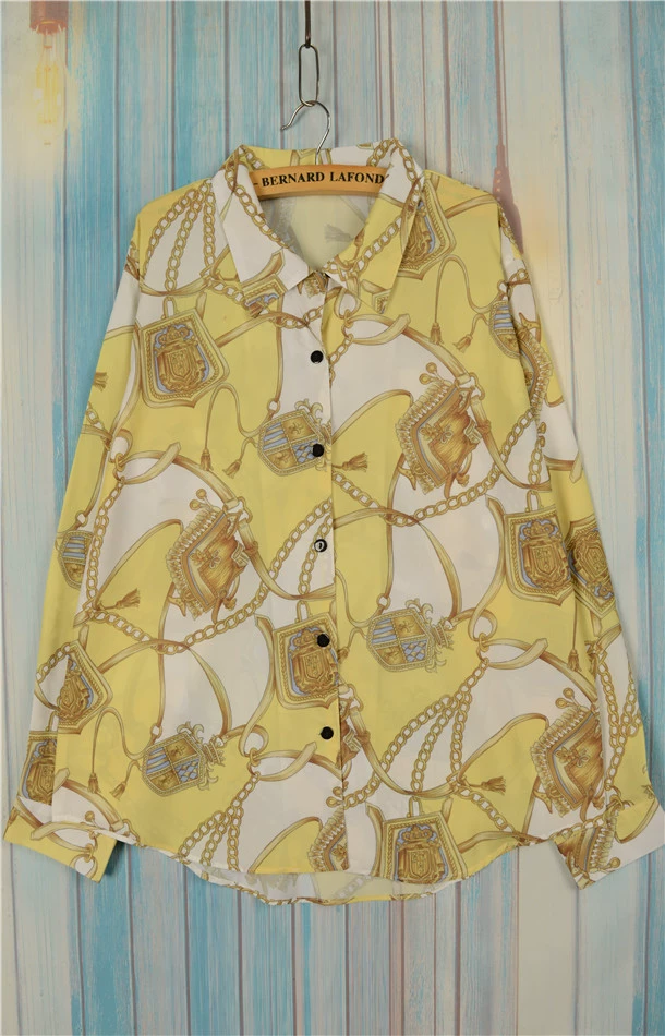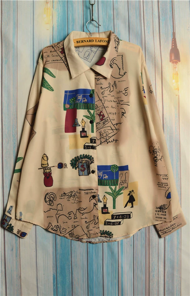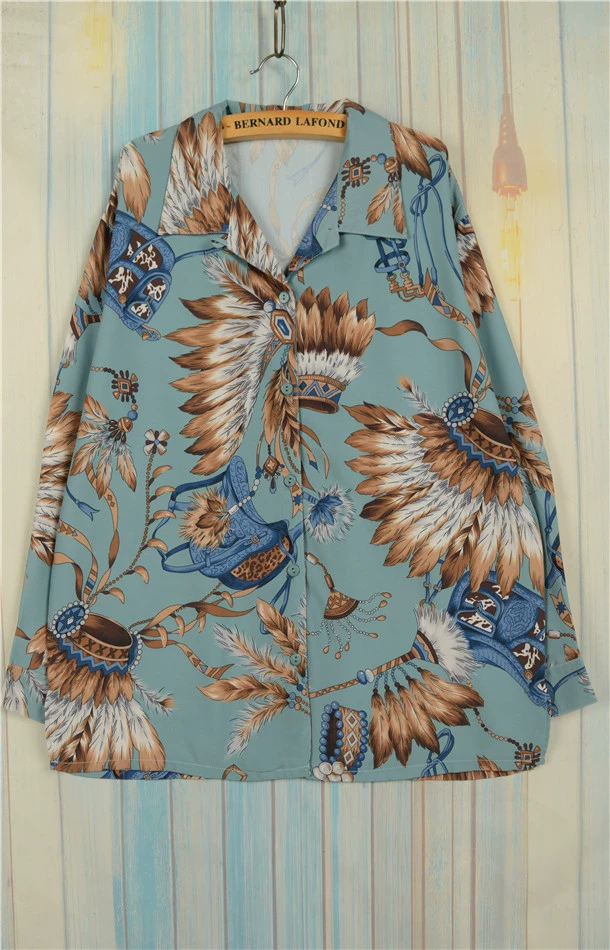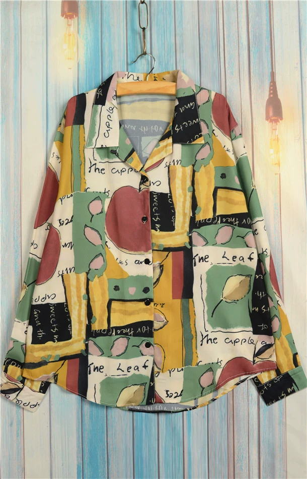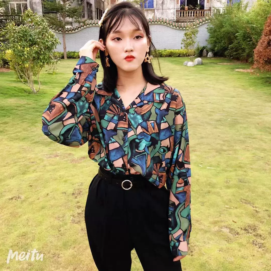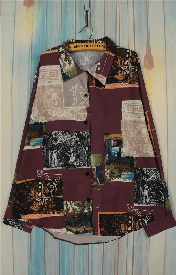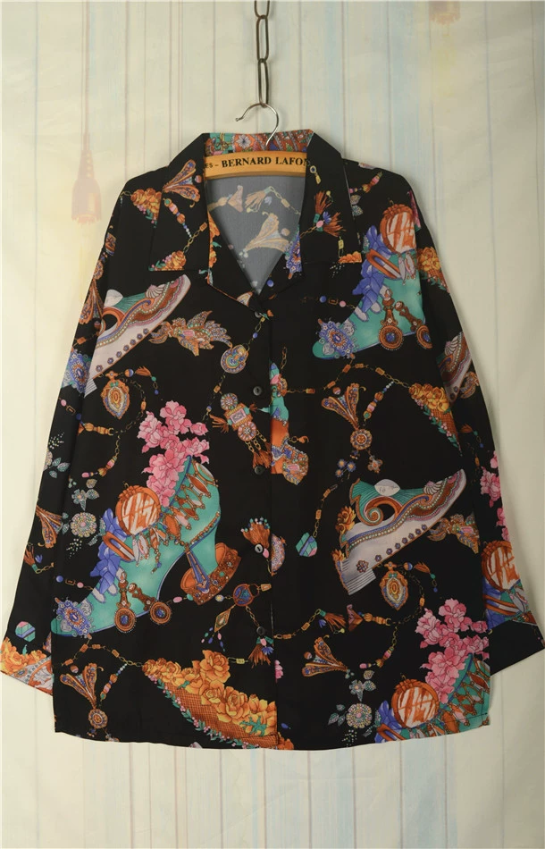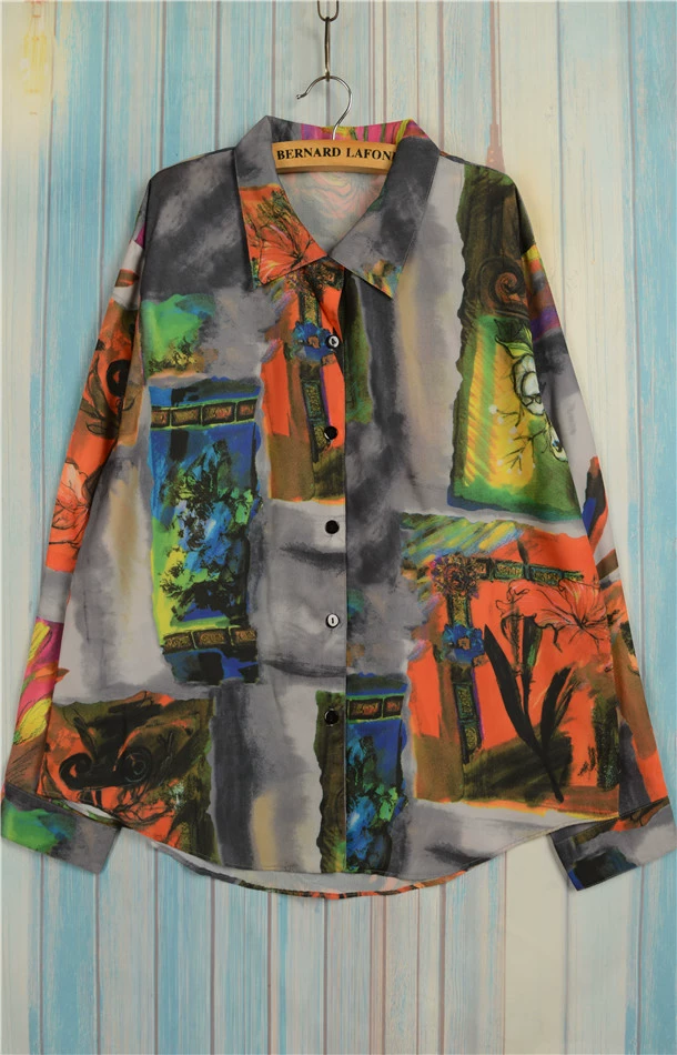 Patterned oversize oil painting long-sleeved loose chiffon shirt