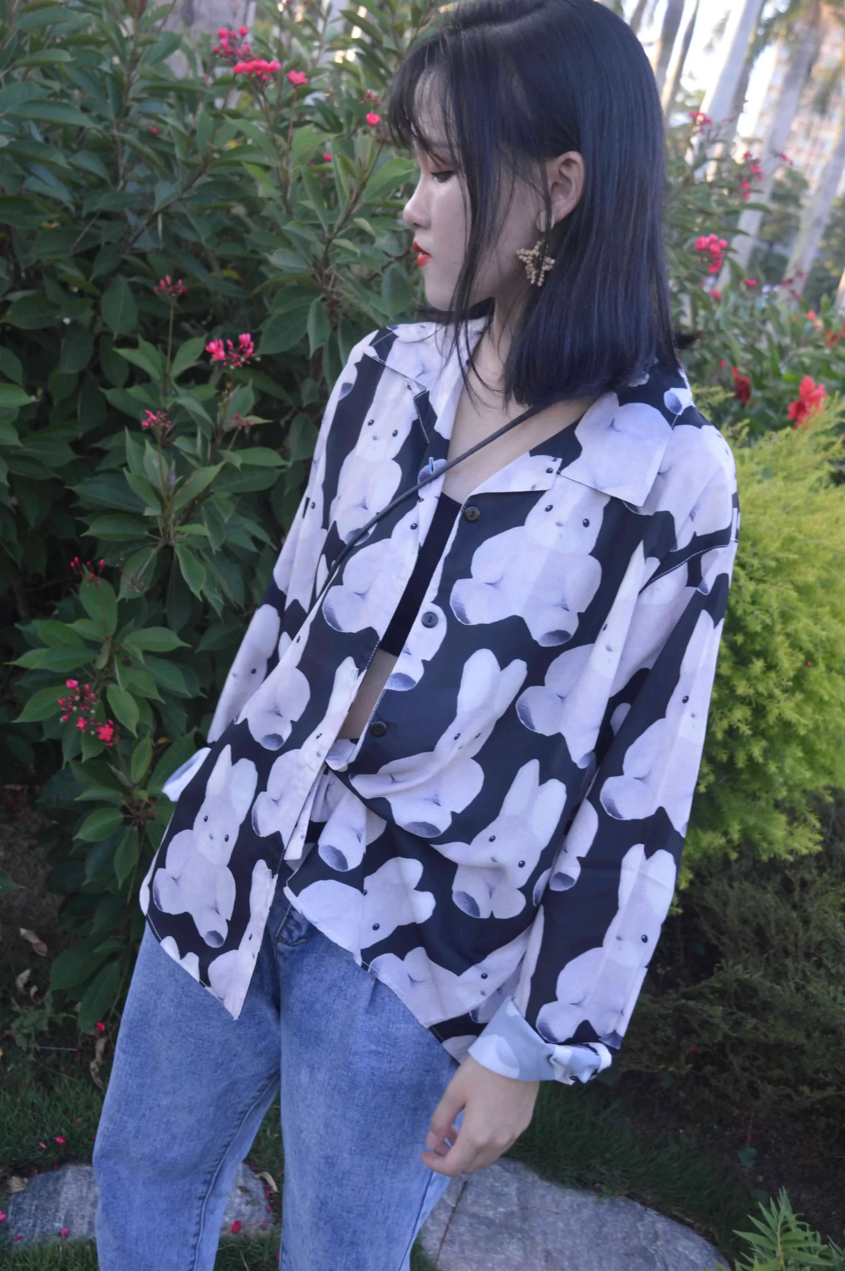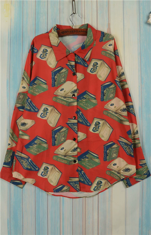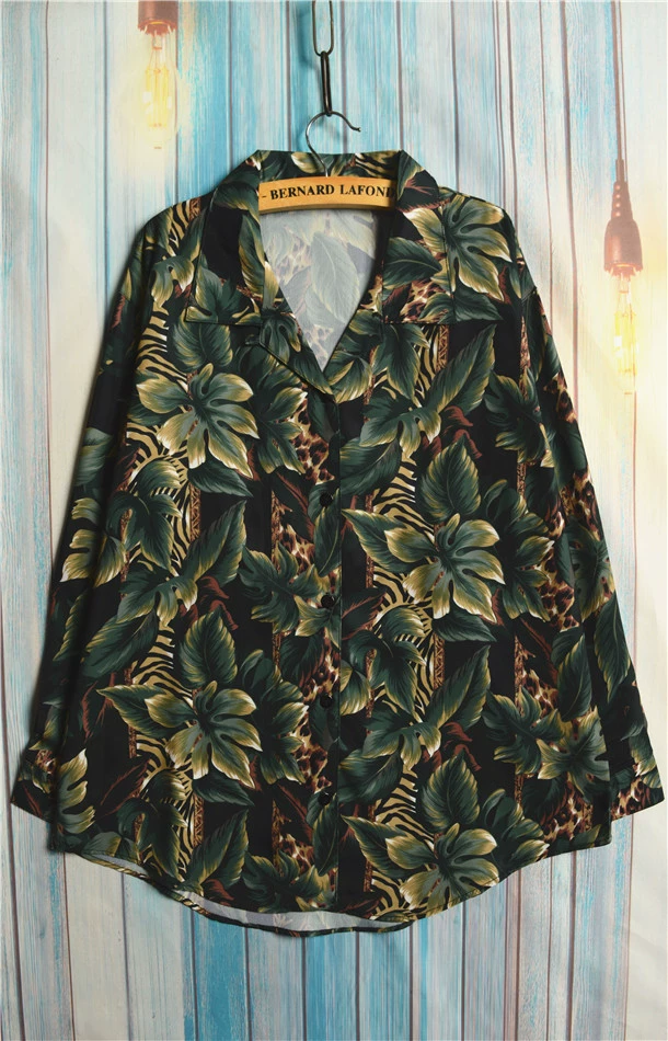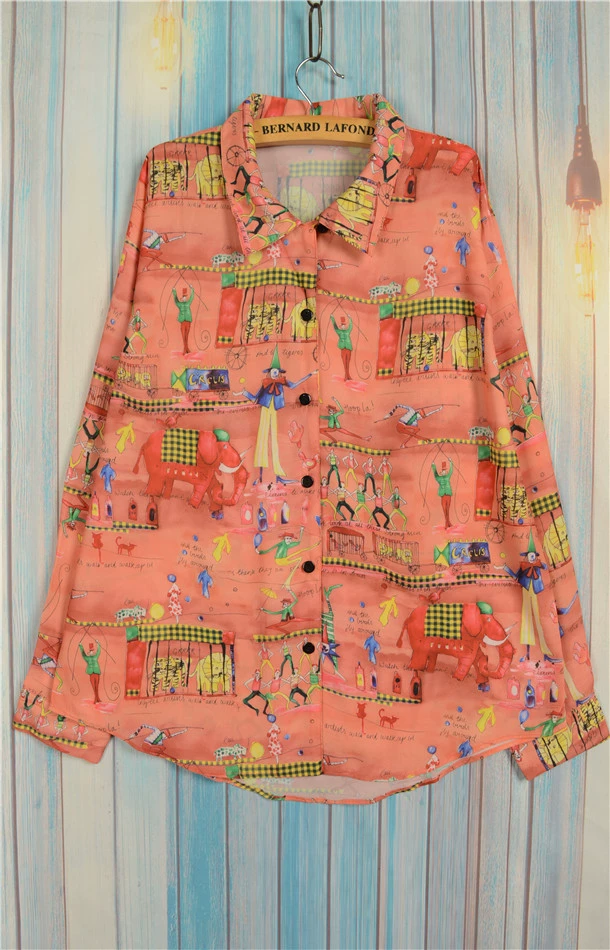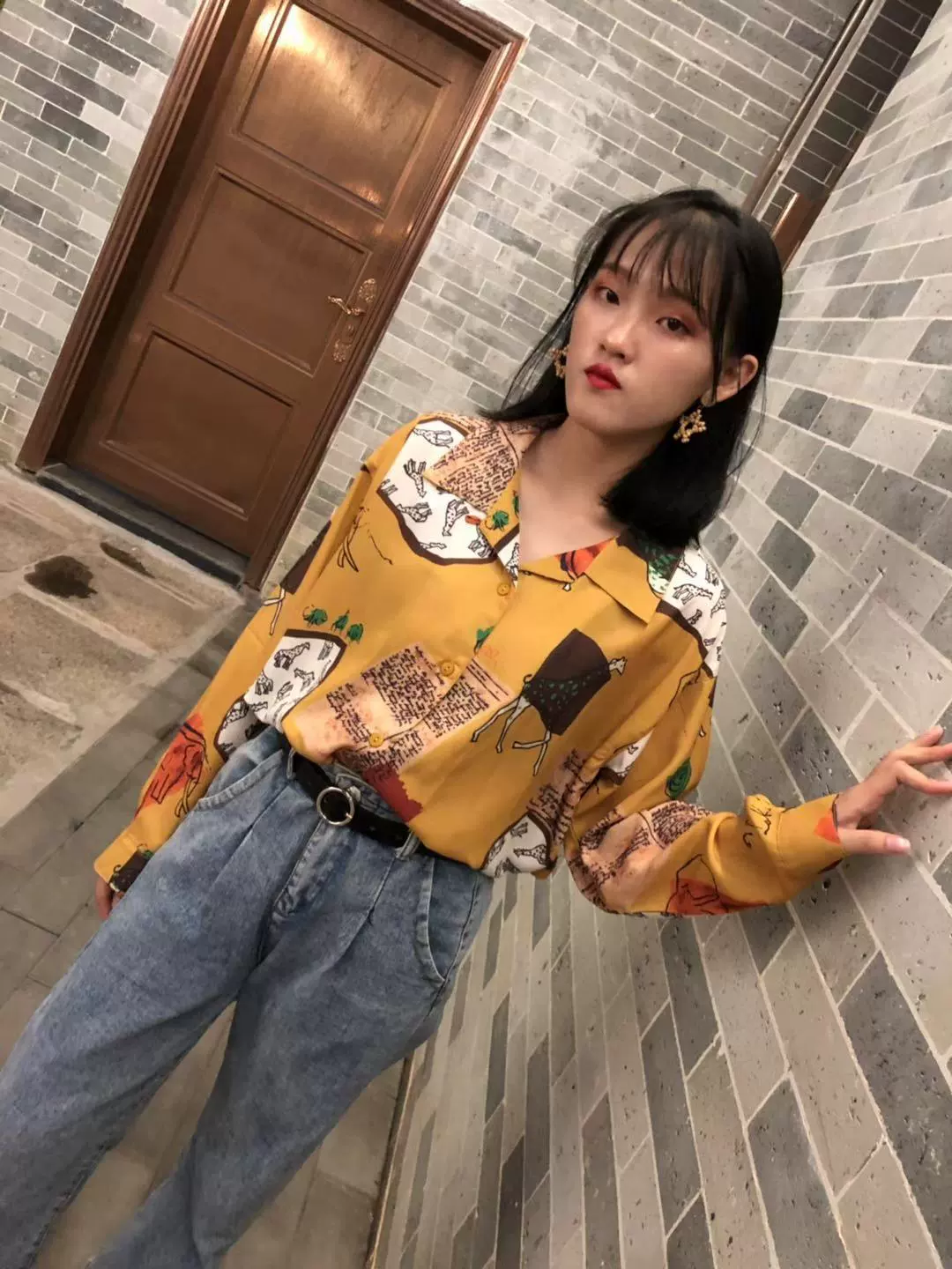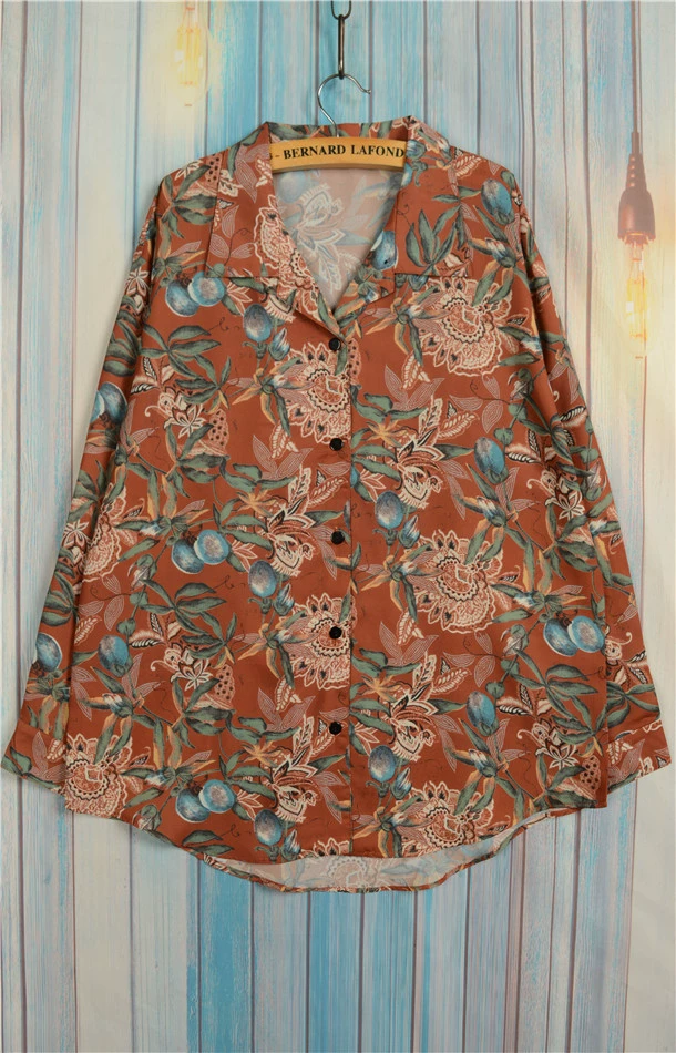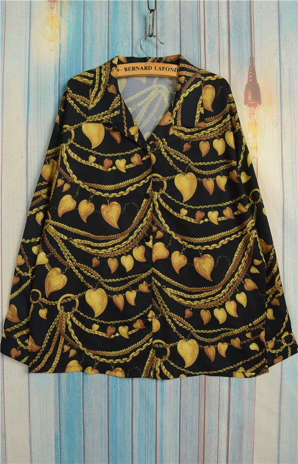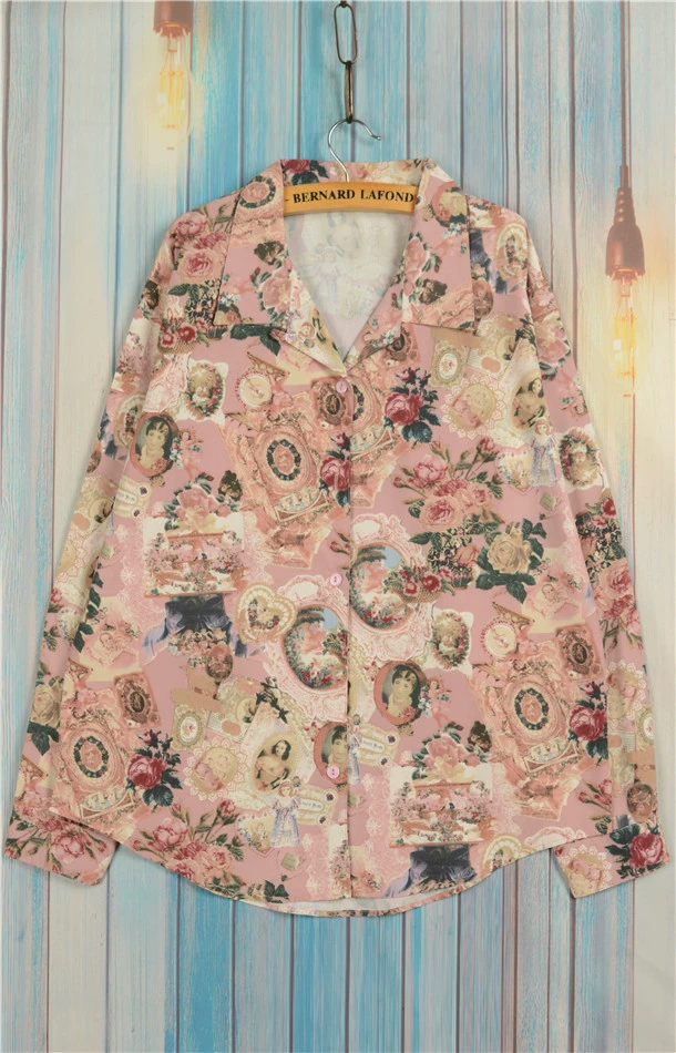 Patterned oversize oil painting long-sleeved loose chiffon shirt