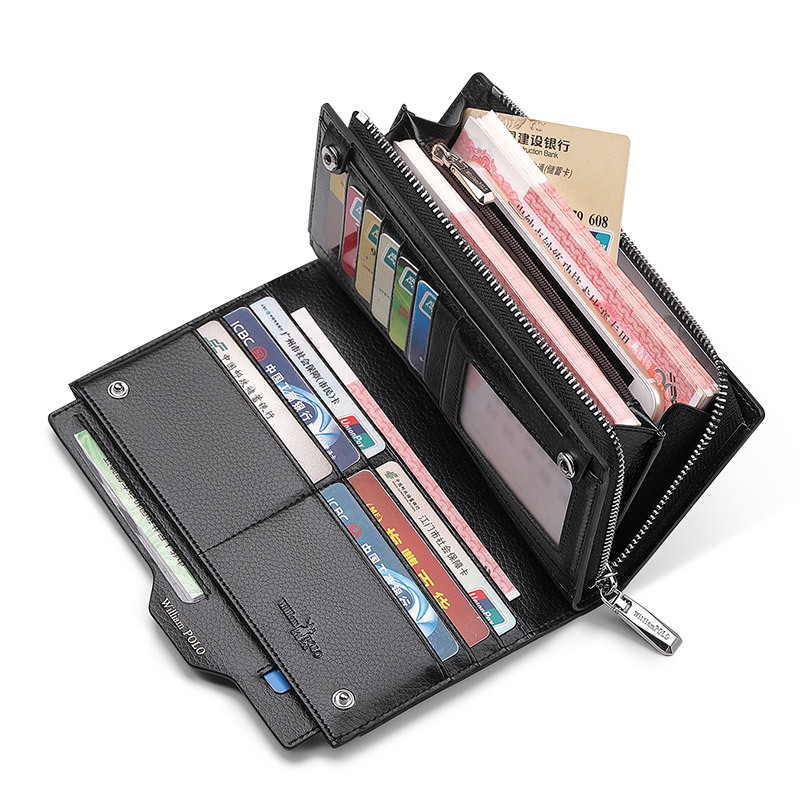 Paul wallet men’s long wallet men’s leather multi-card card holder anti-theft brush driver’s license leather wallet wholesale