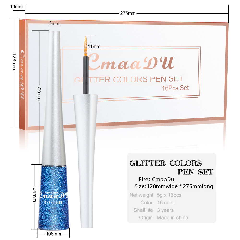 Pay attention to view! Link Disclaimer-Foreign Trade Exclusive: CmaaDu 16 Color Set Glitter Powder Eyeliner