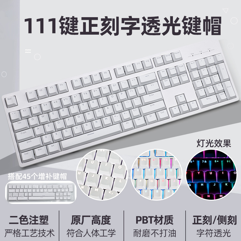 | nameOriginal | PBT two-color word through the original factory side through the key cap positive through the key cap material small full set can be used as sublimation dip dyeing material |