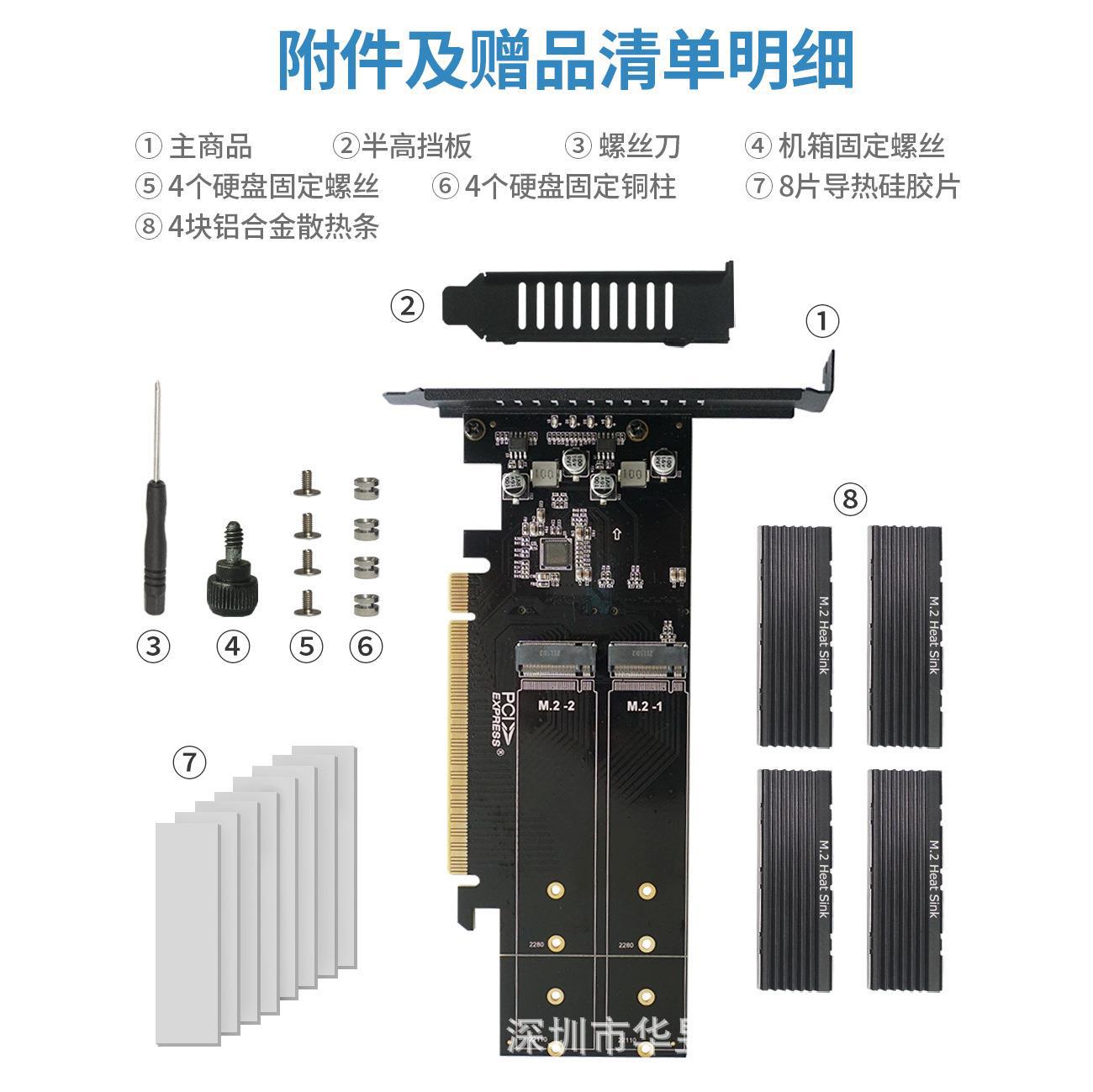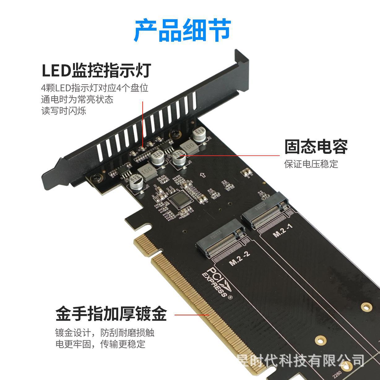 | nameOriginal | PCIE3.0X16 to 4-disk M.2NVME solid state drive SSD array card soft RAID card disk array card |