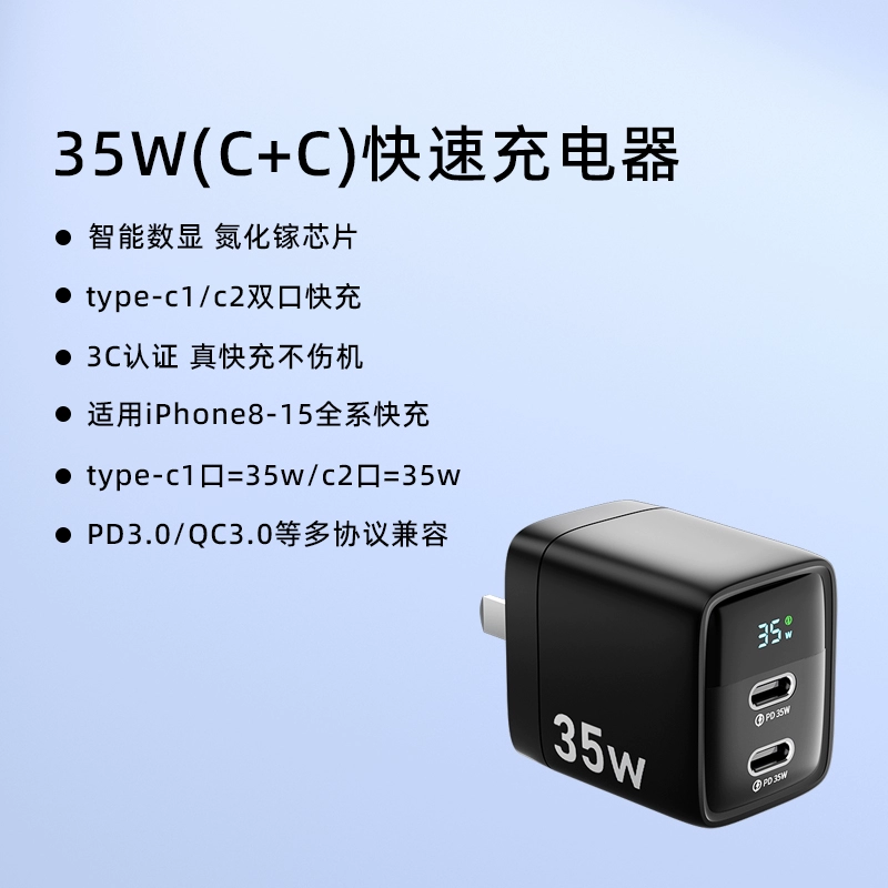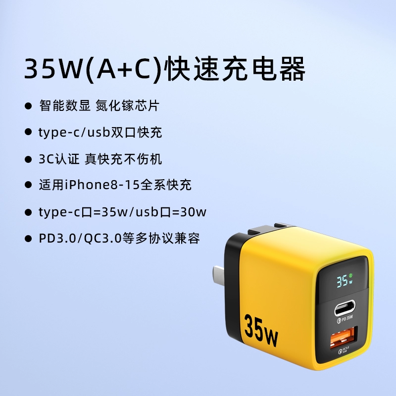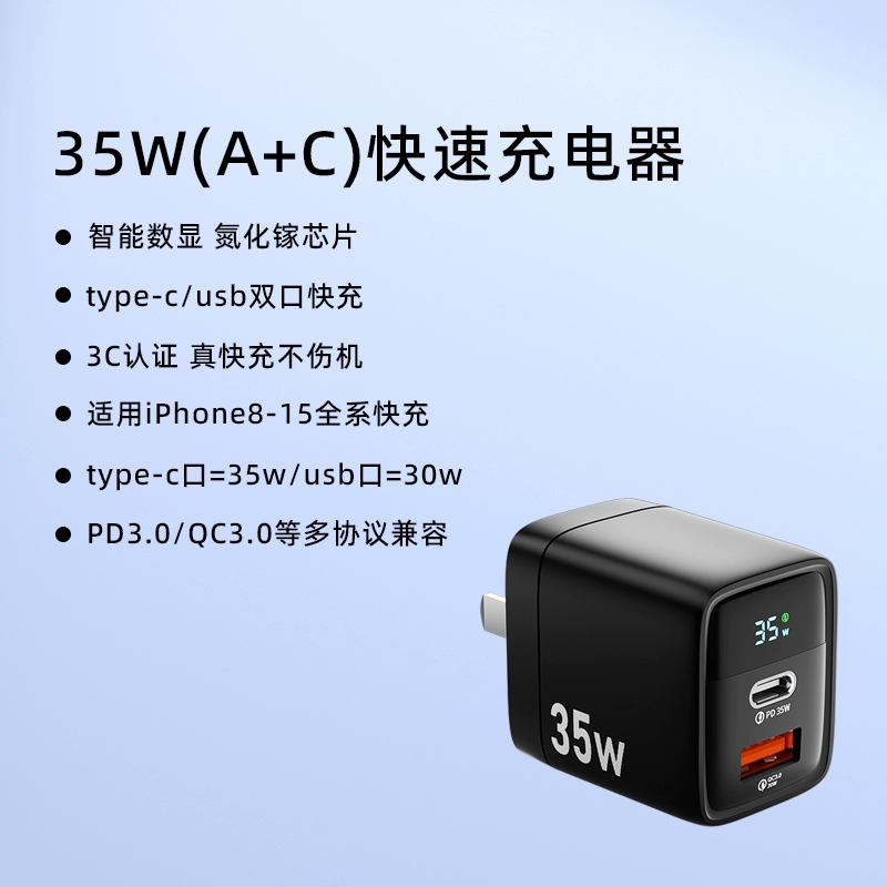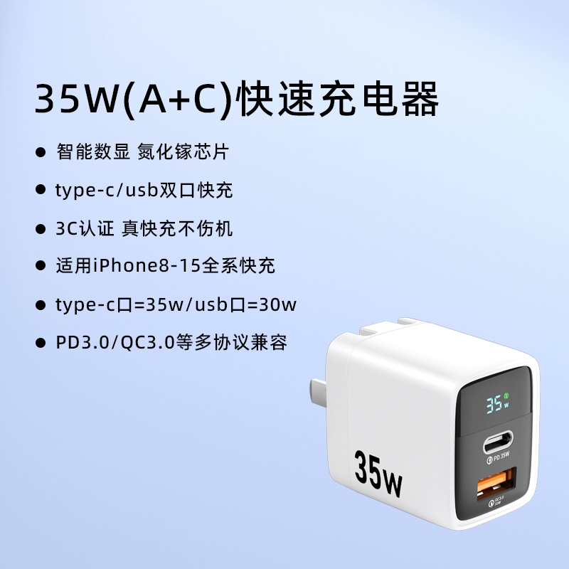 | nameOriginal | pd35w digital display gallium nitride mobile phone charger suitable for Apple 8-15pro charging head fast charging universal iphone fast charging head typec data cable ipad watch usb dual port fast charging |