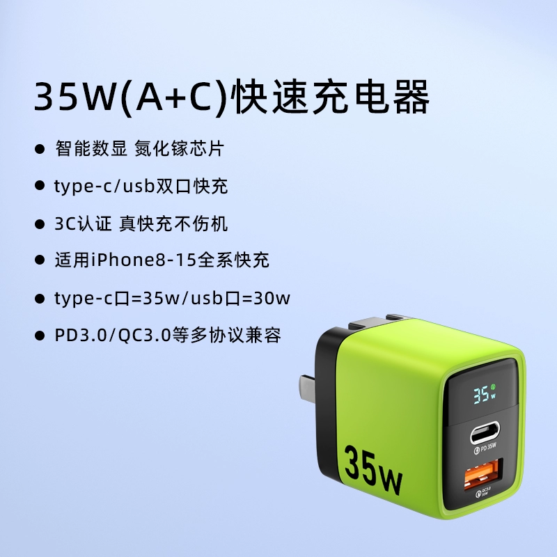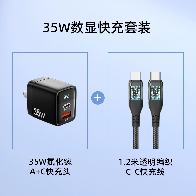 pd35w digital display gallium nitride mobile phone charger suitable for Apple 8-15pro charging head fast charging universal iphone fast charging head typec data cable ipad watch usb dual port fast charging