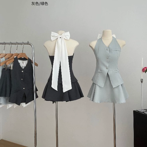 | nameOriginal | Peach backless suit vest short skirt women summer bow |