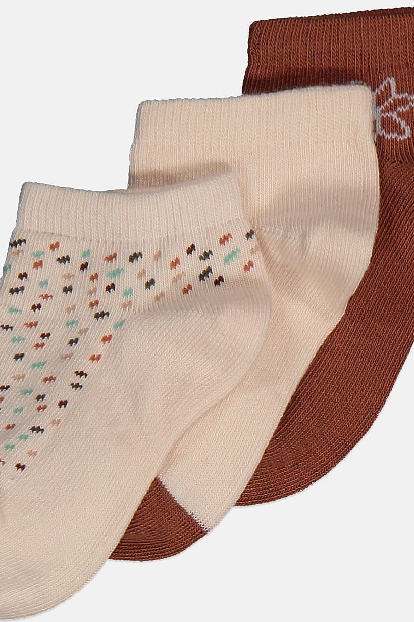 Kids Girl 3 Pair Printed Socks, Peach/Brown