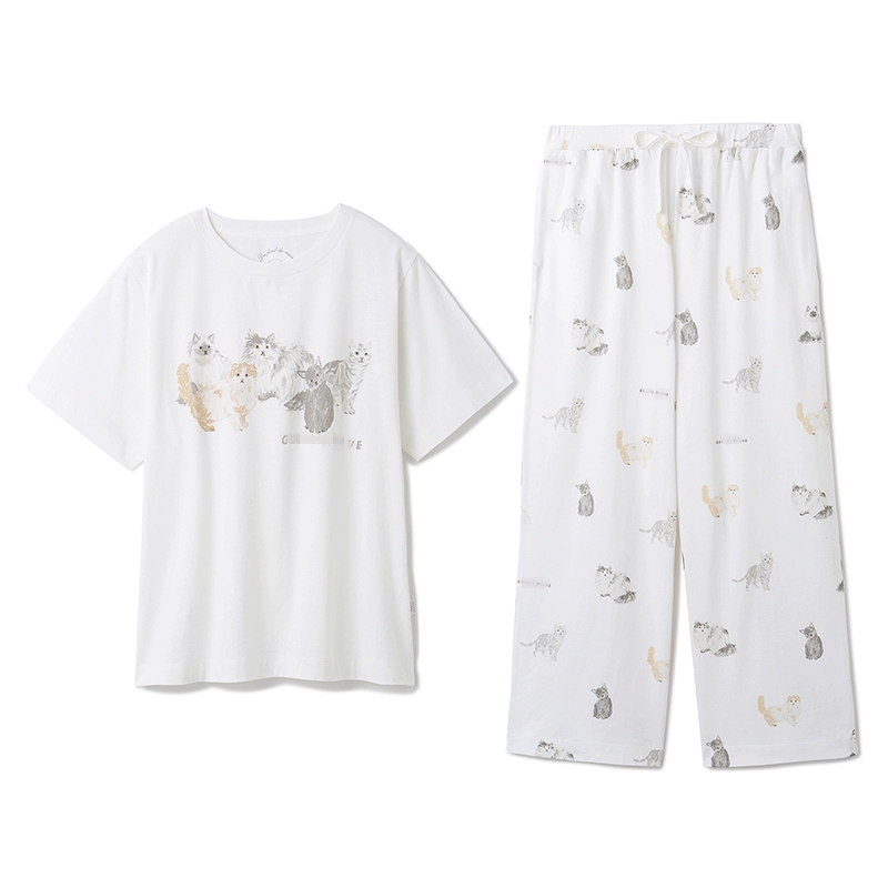 | nameOriginal | Peach cat print soft and skin-friendly short-sleeved pajamas |