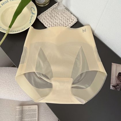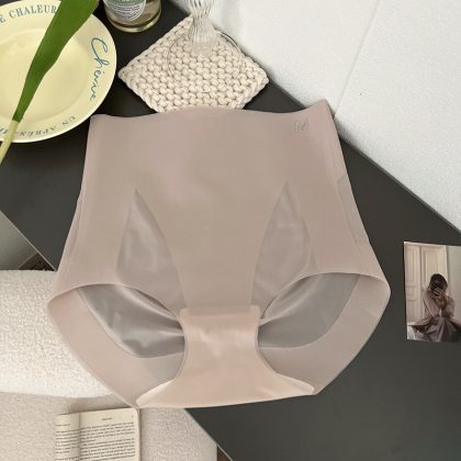 Peach Dorna light luxury elegant Ice Silk 10D light belly contracting M letter breathable bottom crotch high waist hip lifting briefs for women
