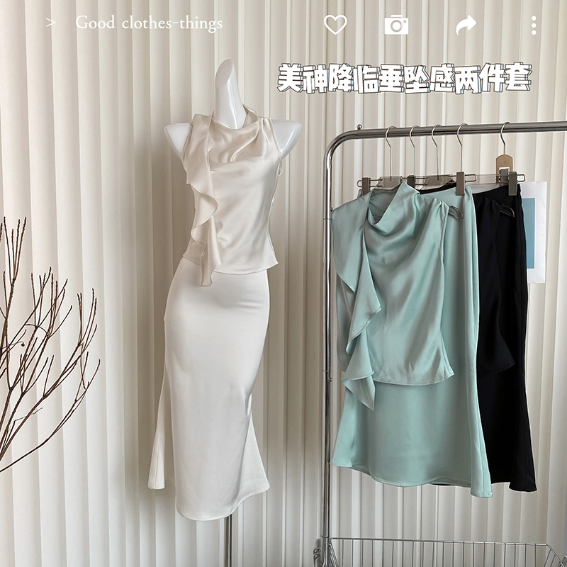 Peach French style high-end satin sleeveless top for women spring and summer drape skirt fishtail skirt suit
