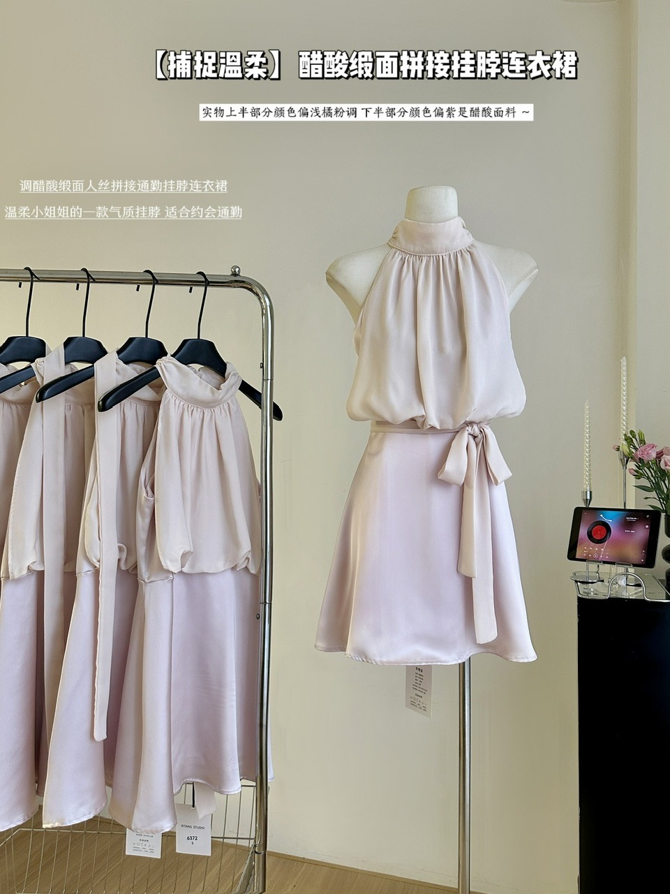 | nameOriginal | Peach gentle acetate satin rayon commuter dress |