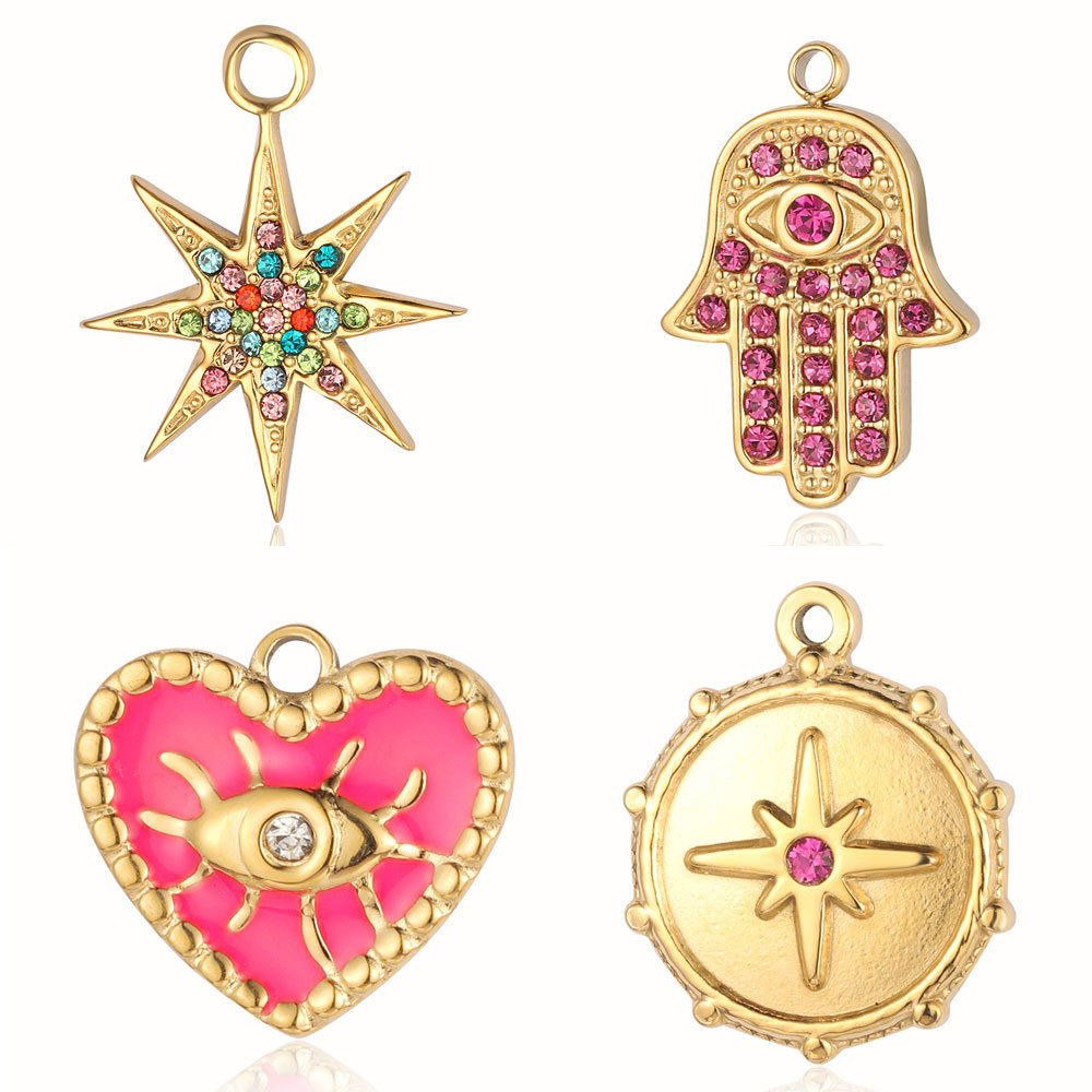 Peach Heart Devil’s Eye French Vintage Titanium Steel Pendant Sun Star Jewelry Accessories Star Moon Stainless Steel Pendant