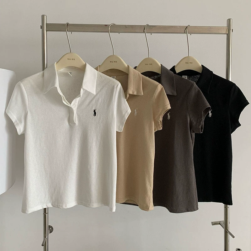 | nameOriginal | Peach homemade 2024 spring new cool college style embroidered shoulder polo short-sleeved versatile top |