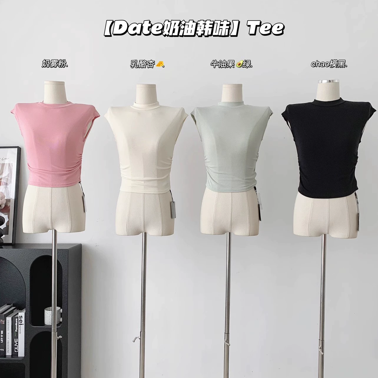 | nameOriginal | Peach homemade cream Korean style tee with invincible city white open high collar short sleeves |