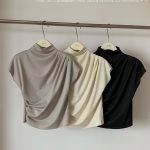 | nameOriginal | Peach homemade Korean chic niche elegant and high-end stand-up collar diagonal pleated unique design shirt top |