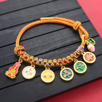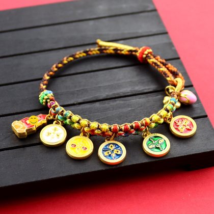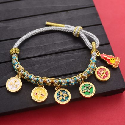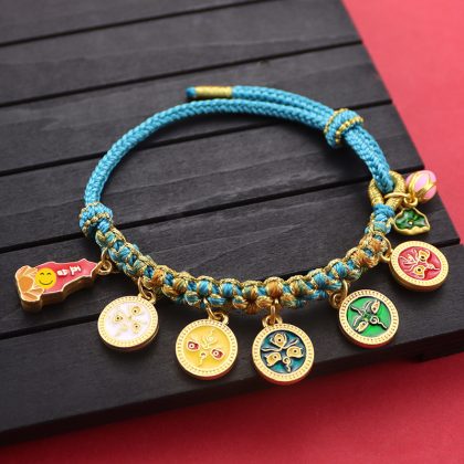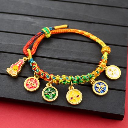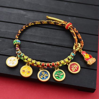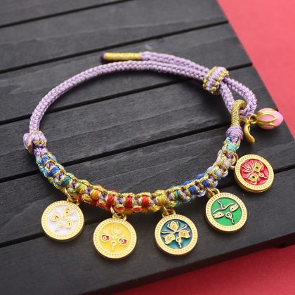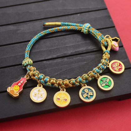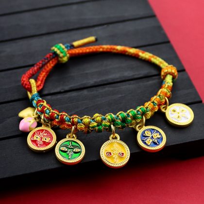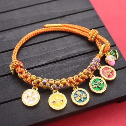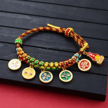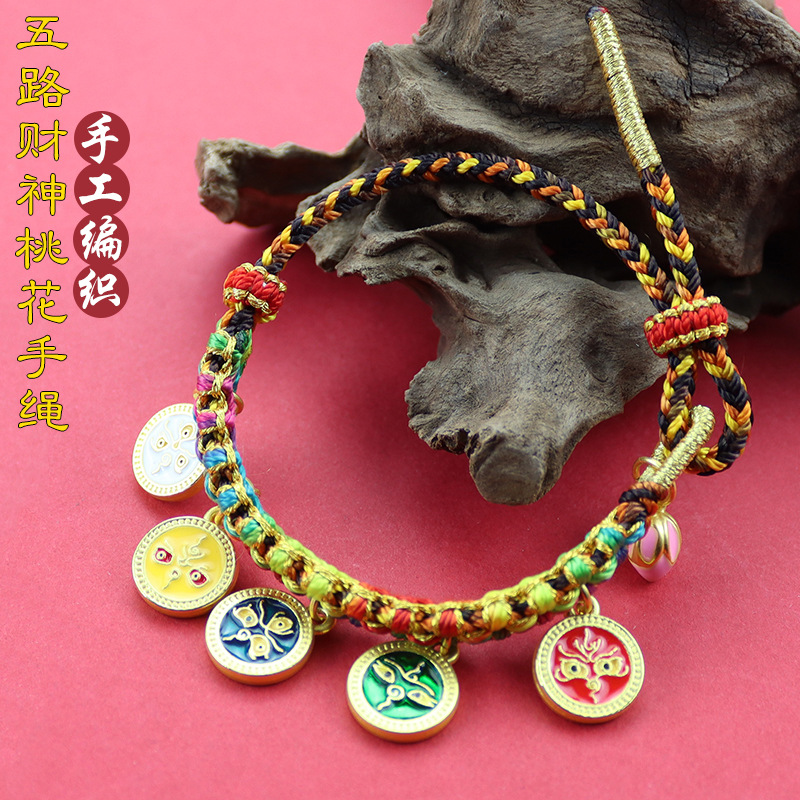 Peach knot five-way God of Wealth bracelet hand rope thangka hand rope cotton thread hand-woven men’s and women’s five-color thread hand rope