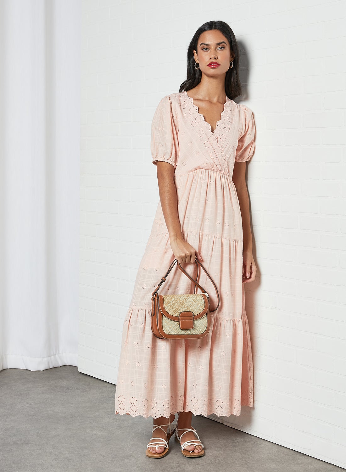 | nameOriginal | Embroidered Tiered Maxi Dress Peach |