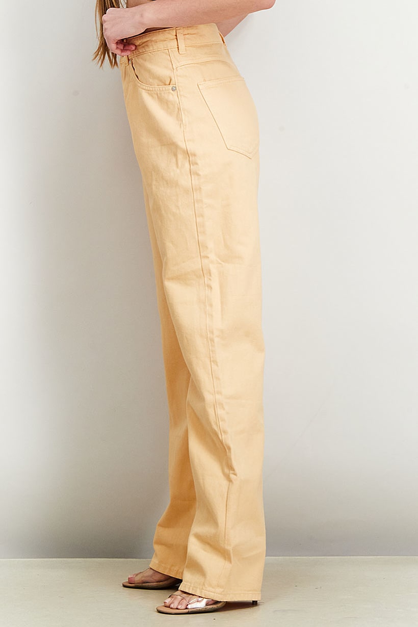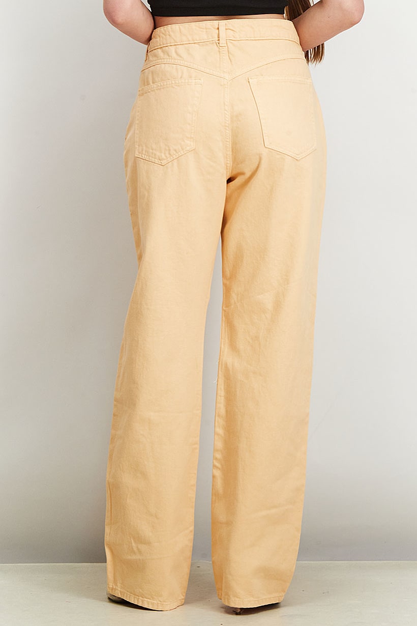 Bottom Hem : Straight, Care : Machine washable, Fit : Straight, Ideal For : Women, Leg Style : Straight Leg, Size shown : EU, Stretch Type : No stretch, Bottom Closure : Button, Bottom Style/Pattern : Belt loops, Disclaimer : Product color may slightly vary due to photographic lighting sources or your monitor settings., Fabrics : 100% Cotton, Occasion : Casual, Pattern & Print : Plain/Solid, Color Family : Peach,