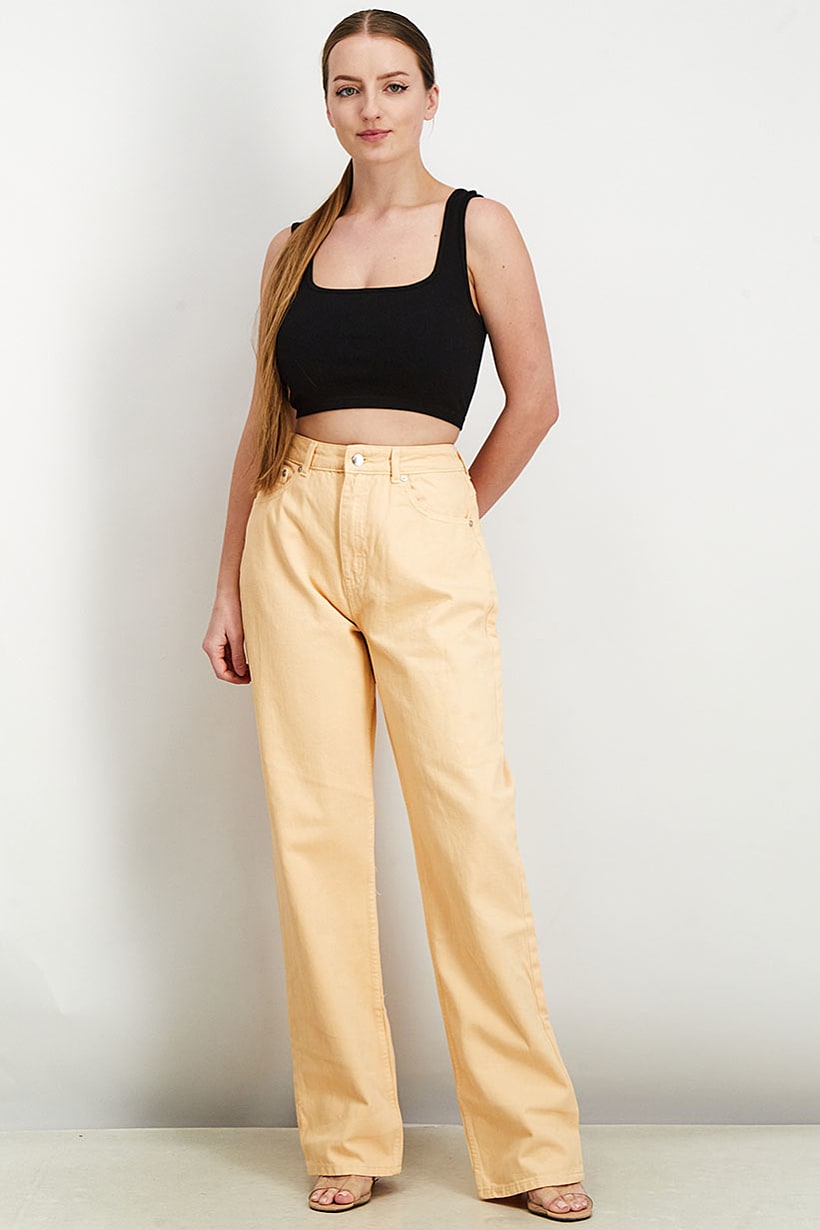 Women Clothing, Jeans, women straight fit solid denim jeans peach