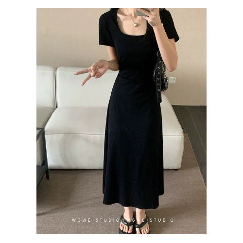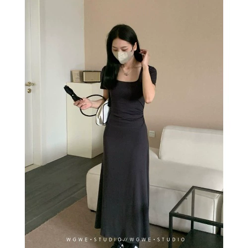 | nameOriginal | Peach Square Neck Spring Gray Lazy Waist Dress |
