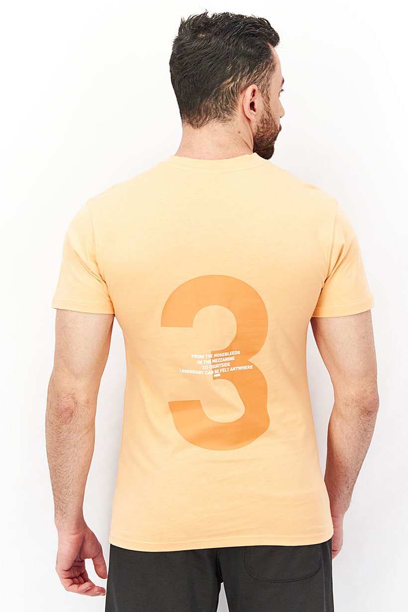 This product is easy to care for as it is machine washable. It has a sportswear fit and is available in US sizes. The fabric is made of 100% cotton and is light in thickness, making it suitable for outdoor sports. Please note that the product color may appear slightly different due to lighting or monitor settings. The t-shirt features a graphic print and comes in a peach color. It is categorized as sportswear.