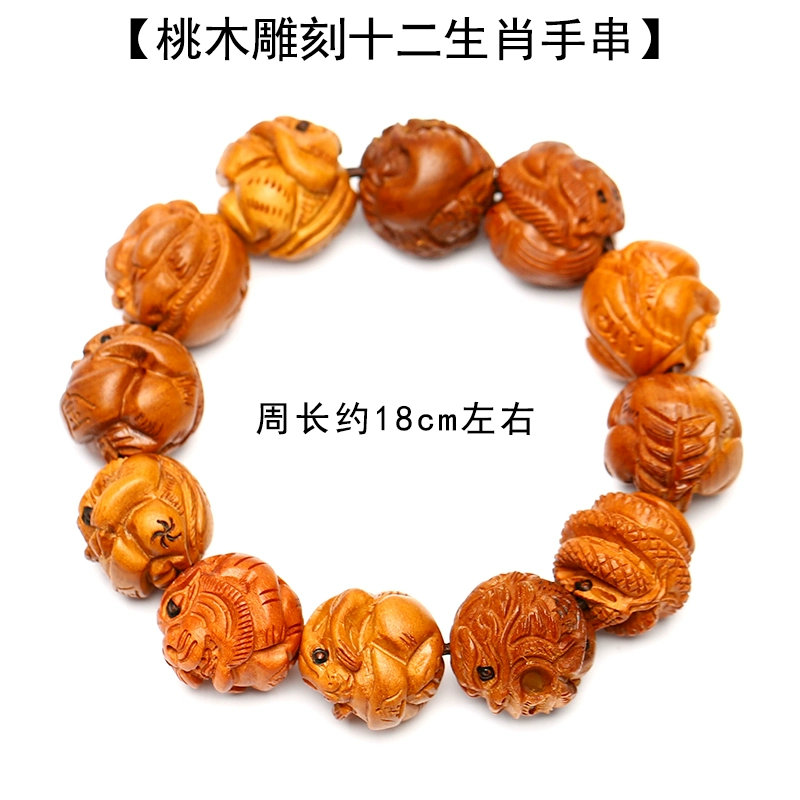 Peach wood 12 zodiac bracelet bracelet, the year of birth is rat, ox, tiger, rabbit, dragon, snake, horse, sheep, monkey, chicken, dog, pig, Buddhist bead mascot