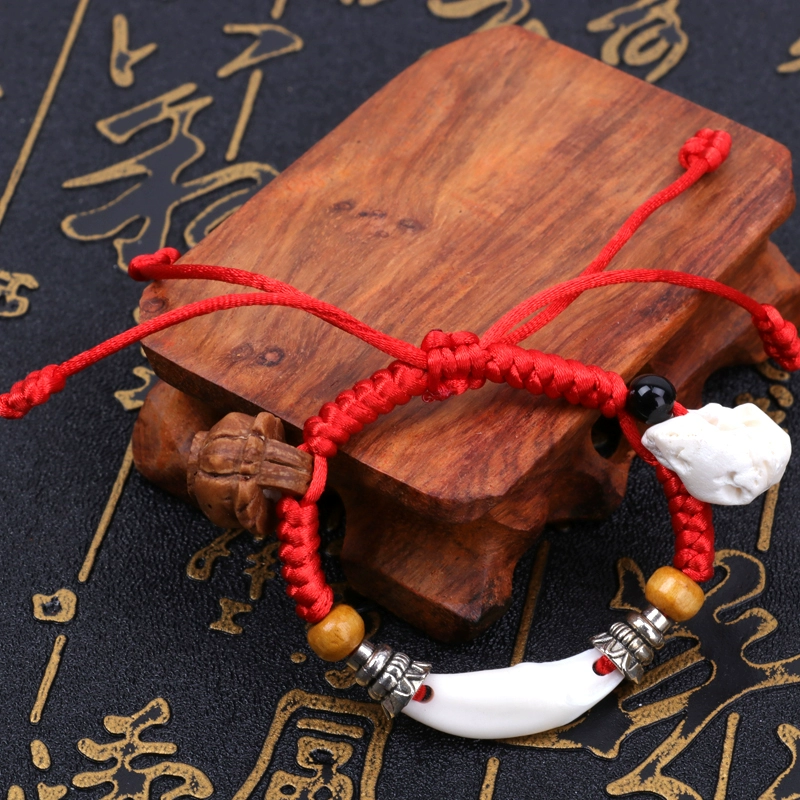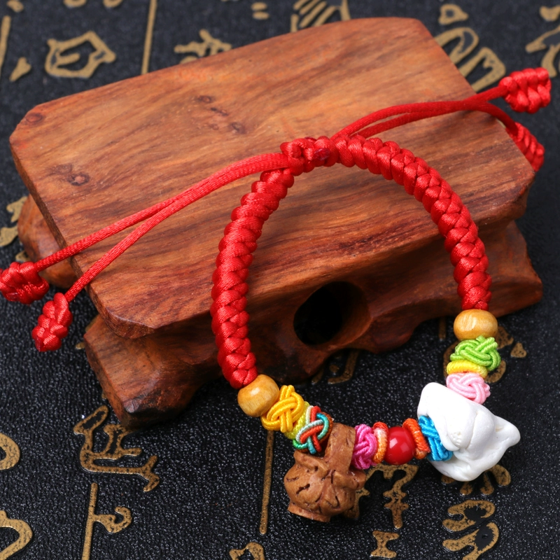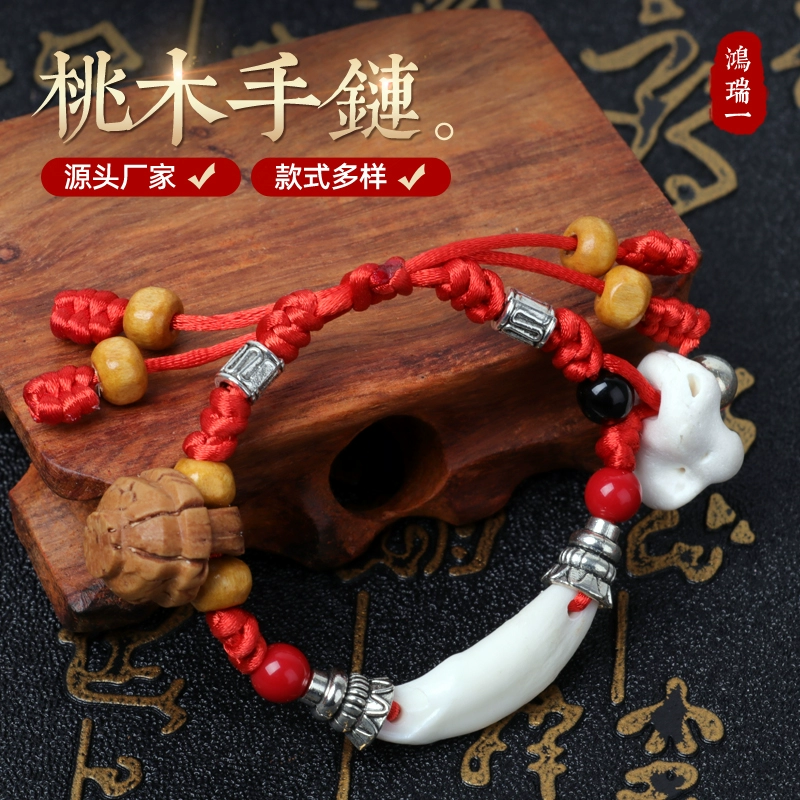 Peach wood jewelry portable peach blue multicolored rope pig essence bone dog tooth shock children baby boy female ethnic style bracelet
