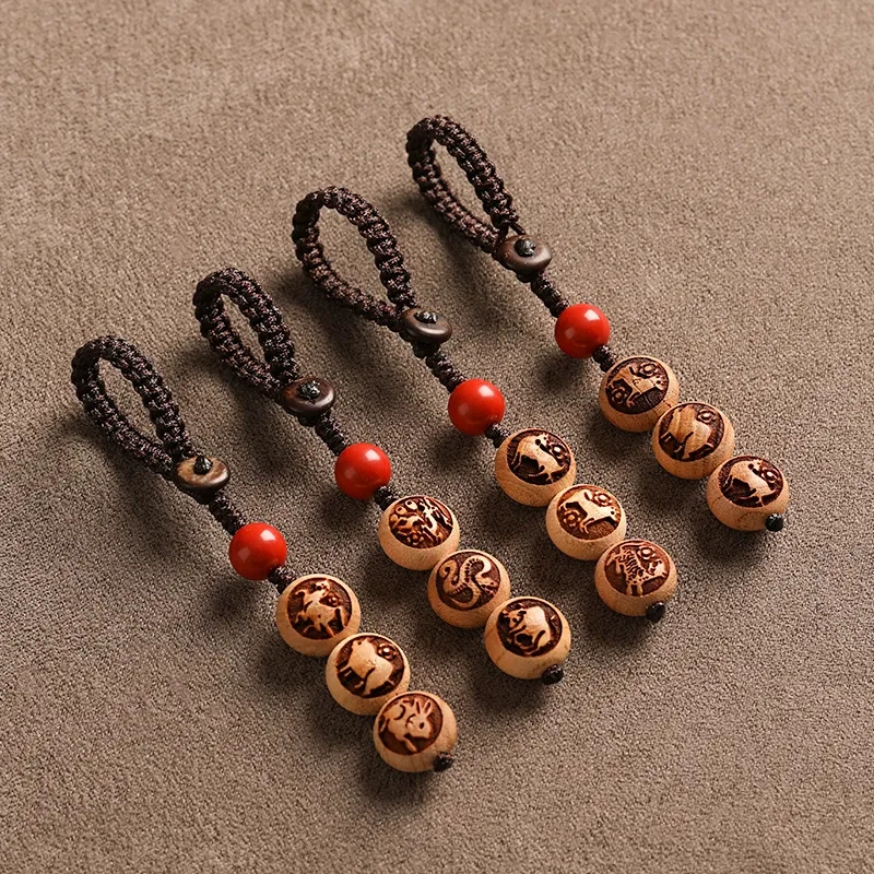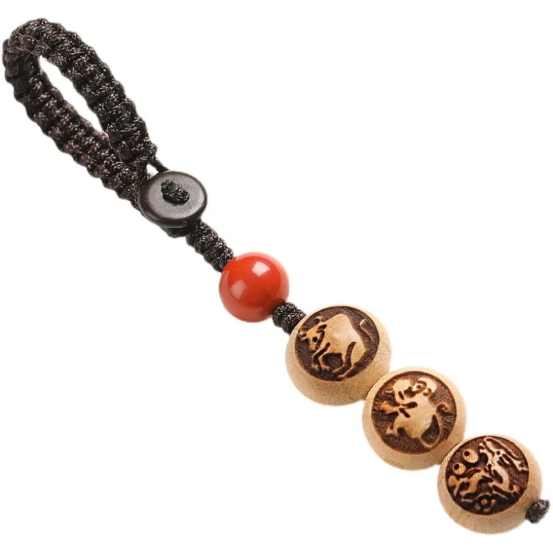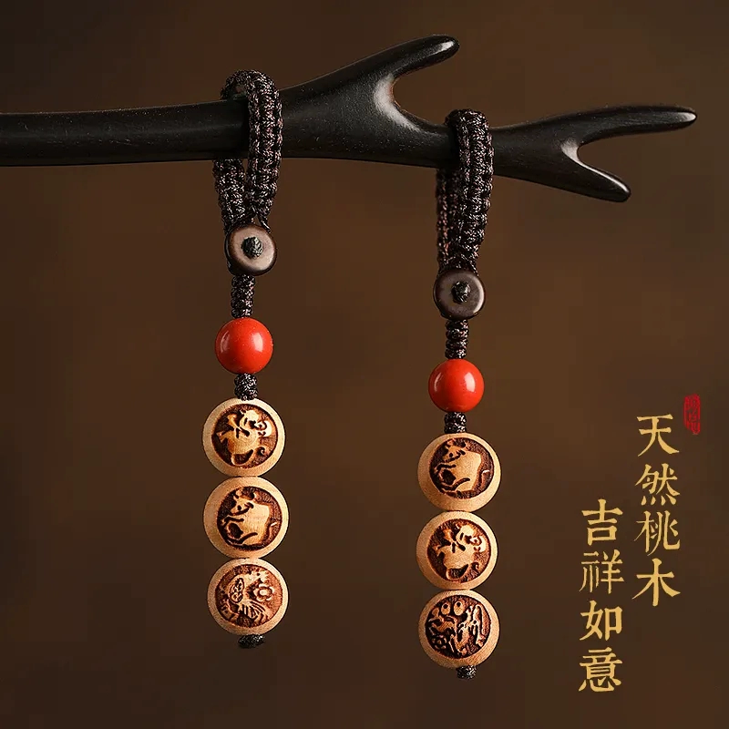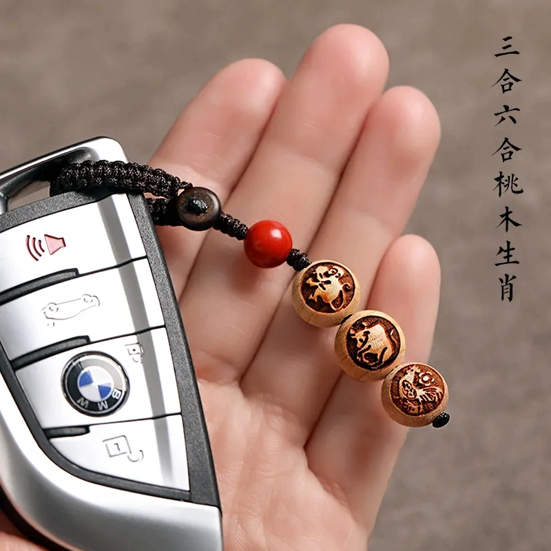 | nameOriginal | Peach wood three-in-one six-in-one cinnabar zodiac car keychain pendant belongs to the year of the tiger for men and women, safe pendant pendant |