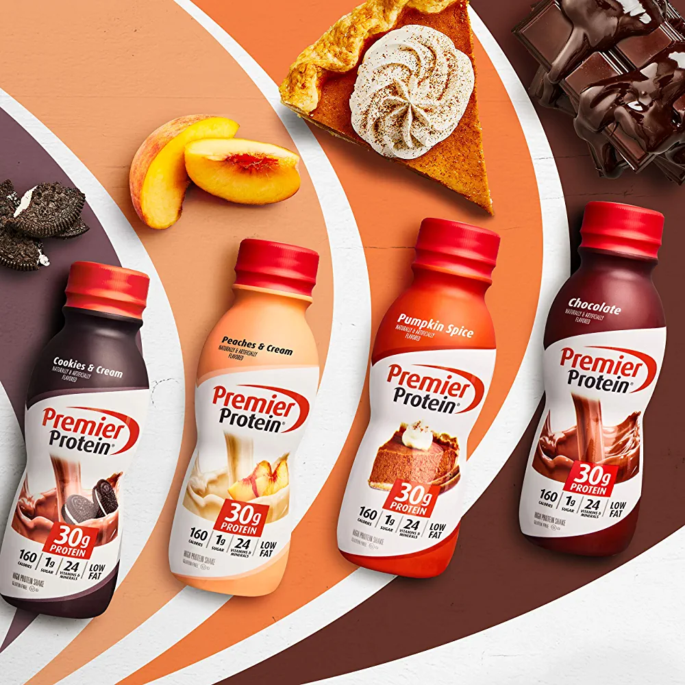 | descriptionOriginal | Description Packaged in a 11.5oz bottle, each Premier Protein Shake contains 30 grams of protein, complete with all the essential amino acids, 1g of sugar, 3-5g carbs (depending on flavor), 160 calories, 24 vitamins & minerals, and is also low in fat. We use a blend of milk protein and casein in our shakes to help fuel muscles quickly and for several hours to help support your goals. Enjoy a shake as a healthy snack, a breakfast on-the-go, an afternoon snack, or as pre- or post-workout fuel. They are delicious as is but are also highly customizable. Try blending with your favorite fruits and vegetables for a delicious smoothie or adding to cereal or oatmeal. Available in 11 delicious flavors: Chocolate, Vanilla, Cafe Latte, Caramel, Cookies & Cream, Strawberries & Cream, Bananas & Cream, Peaches & Cream, Cinnamon Roll, Chocolate Peanut Butter and Cake Batter Delight. |