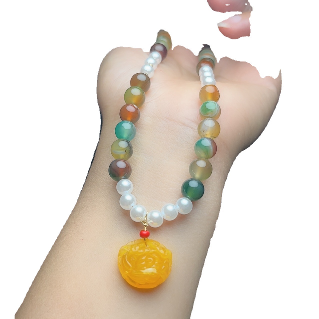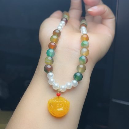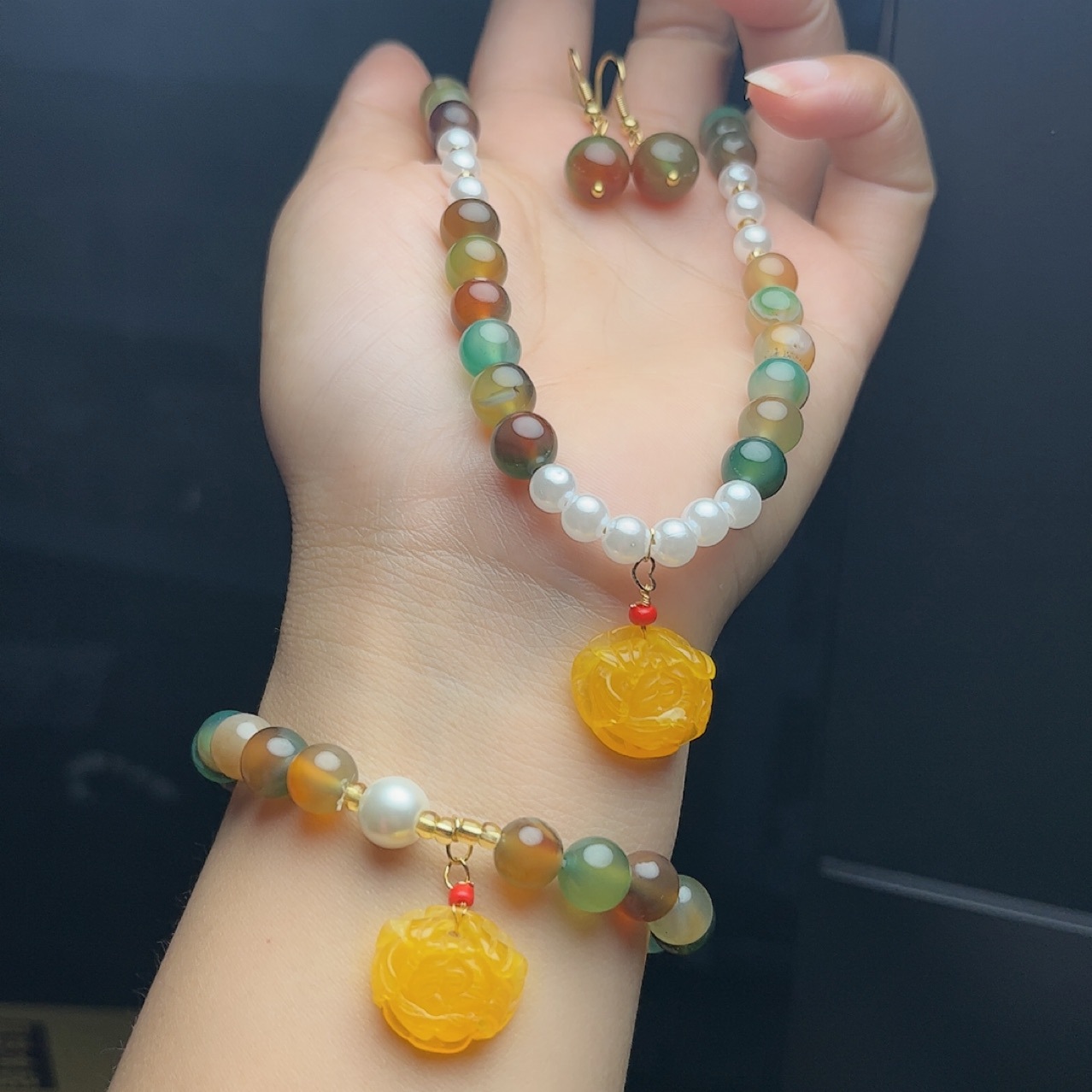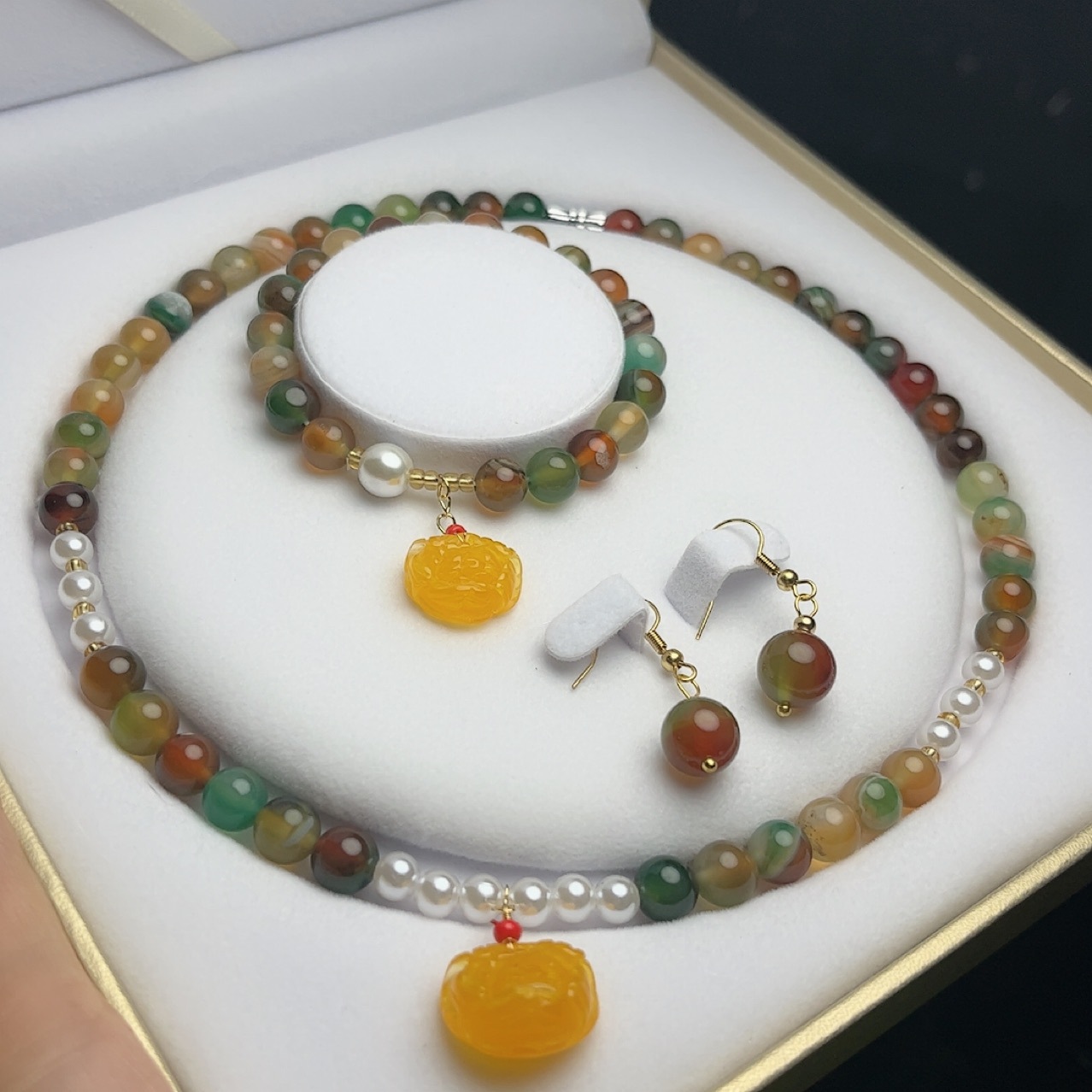 Peacock Agate Three-Piece Jewelry Set Necklace Bracelet Earrings Set Women’s Jewelry for Mother and Elder