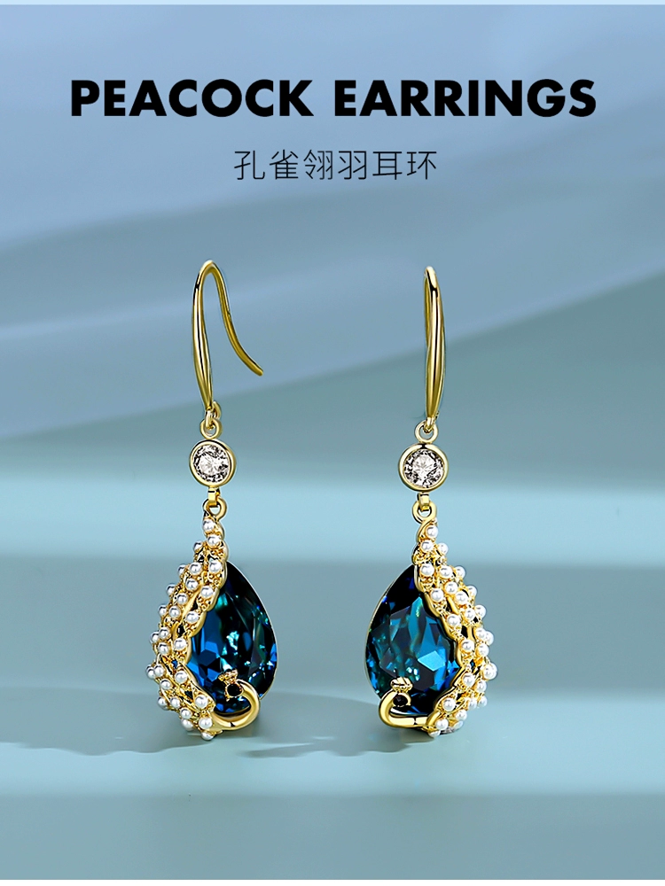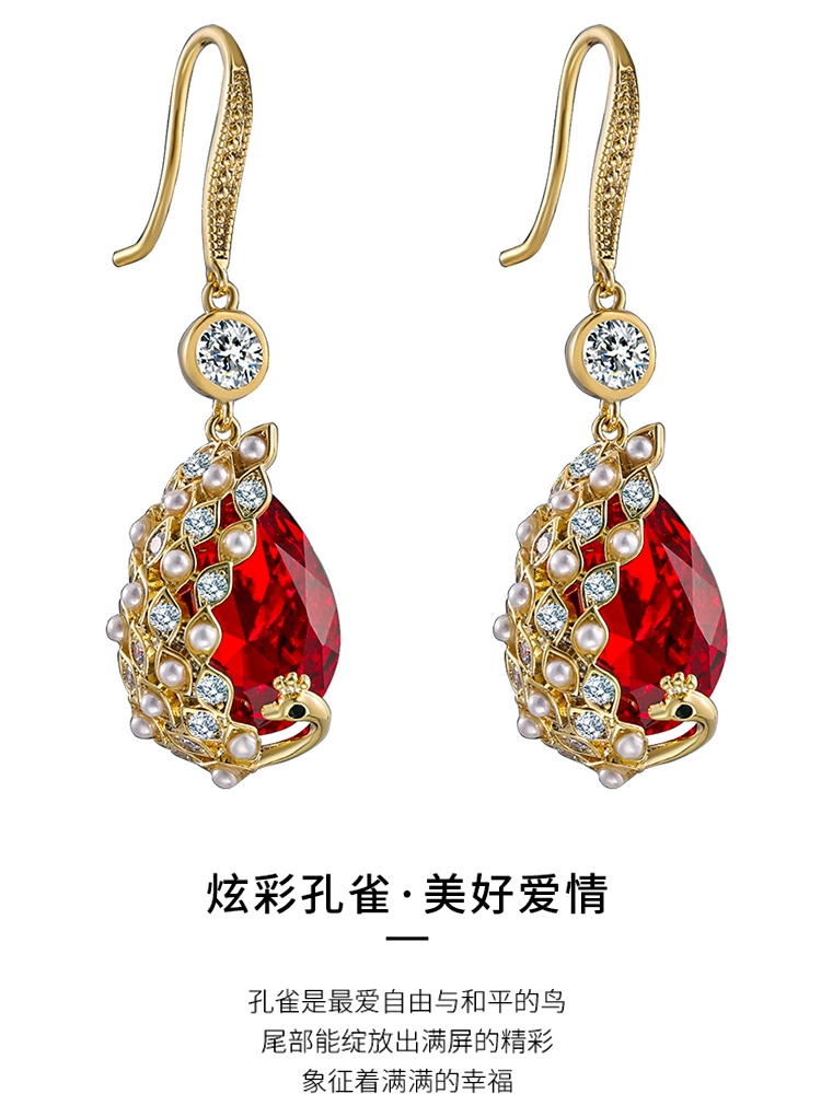 Peacock this year’s unique high-end fashion sense earrings temperament earrings personalized high-end ear jewelry Hong Kong style gold