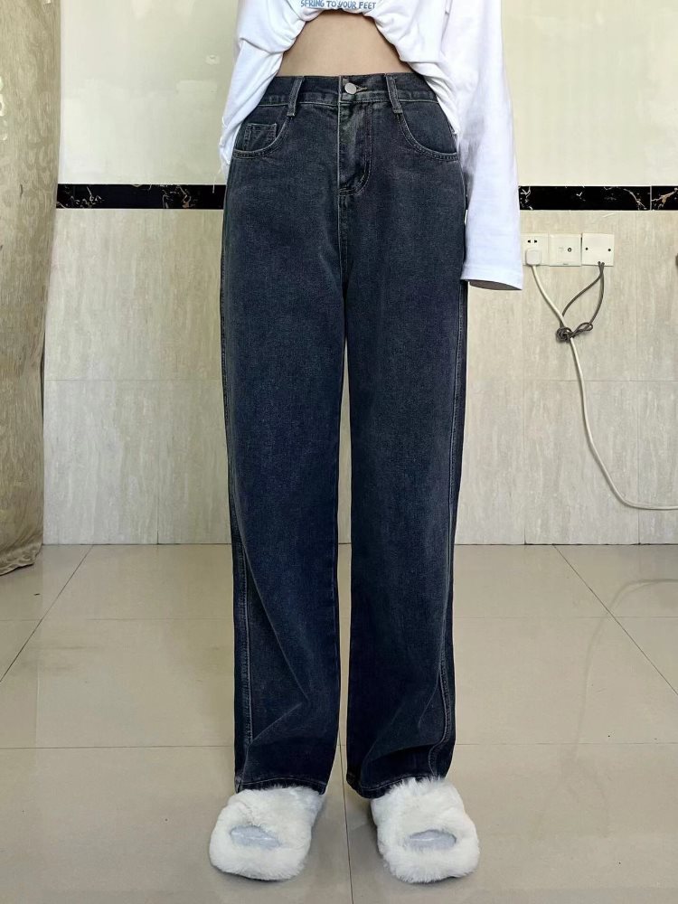 | nameOriginal | Pear-Shaped Body Chubby Blue Grey Straight Jeans Women's plus size chubby girl Spring New All-Match Wide Leg Pants with Hip Covering |