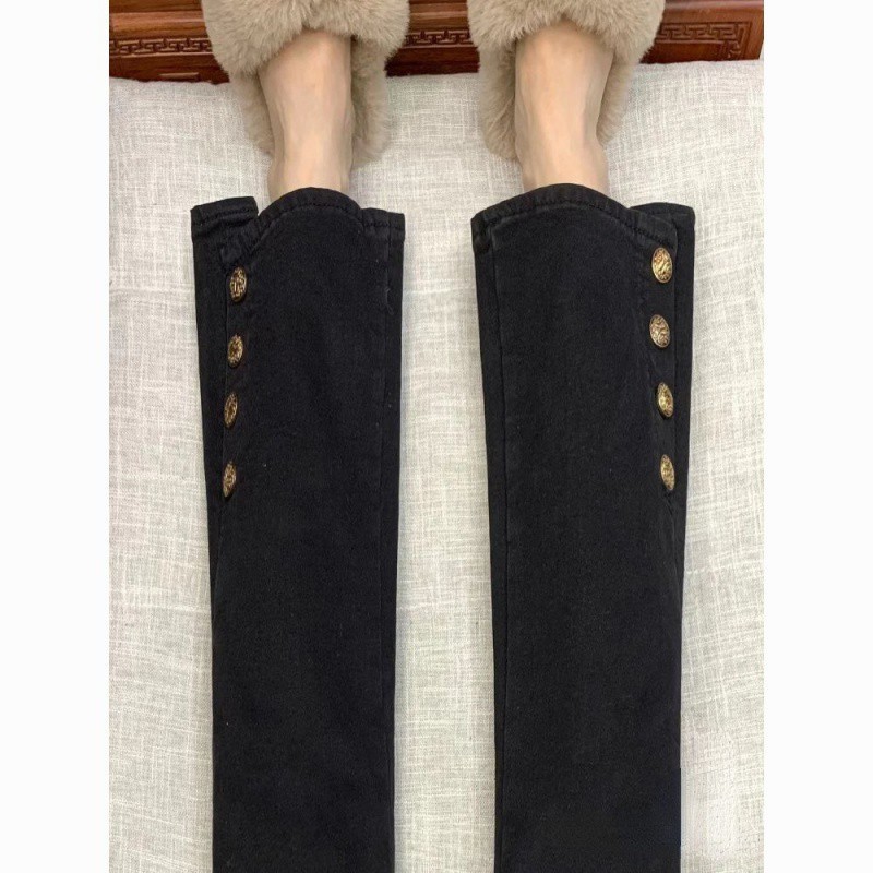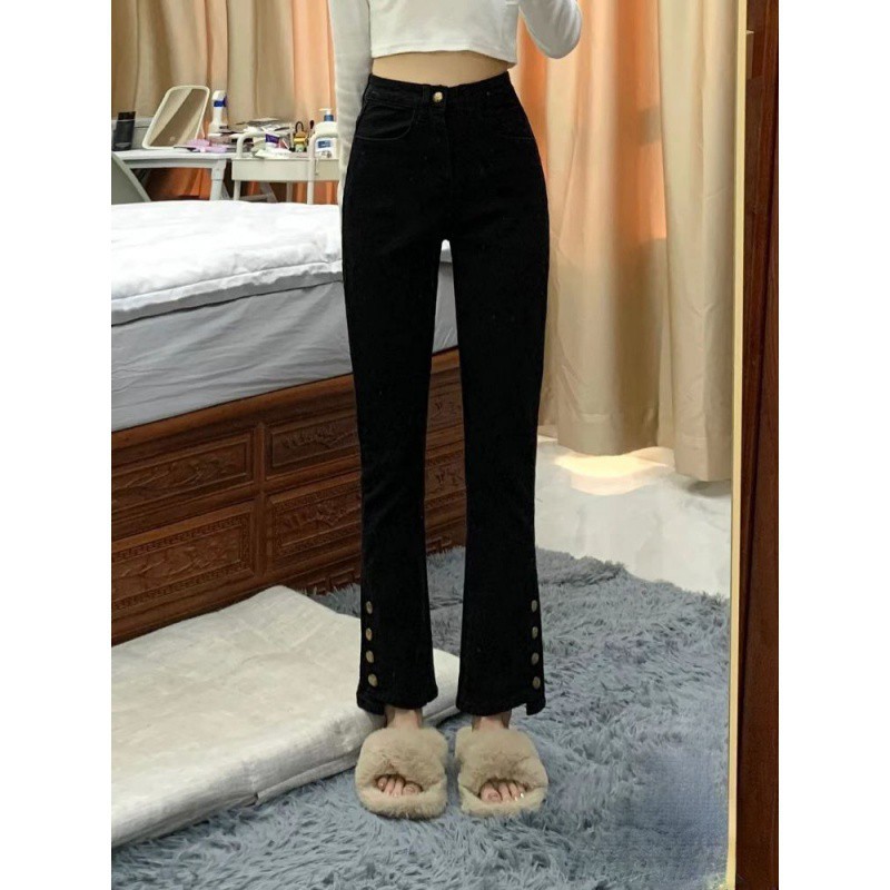 Pear-shaped Body plus size chubby girl Black Straight Jeans Women’s Spring Elastic Slimming Hip Covering Design Micro-flared Pants