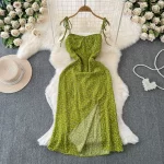 | nameOriginal | Pear-shaped fat mm avocado whitening retro slimming niche floral suspender slit slightly fat dress |