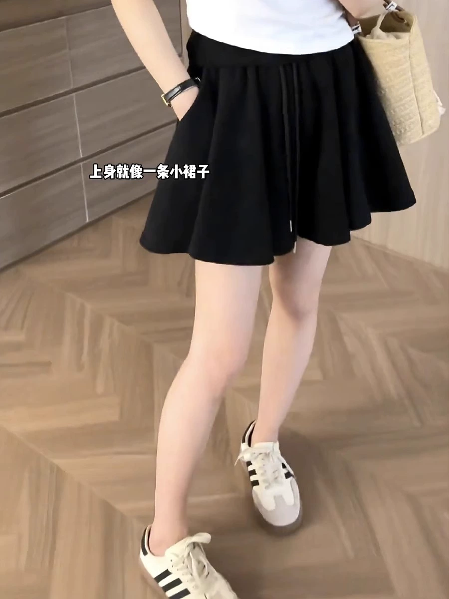 | nameOriginal | Pear-shaped figure drawstring sports shorts for women summer new large size elastic high waist slim casual wide leg pants skirt |