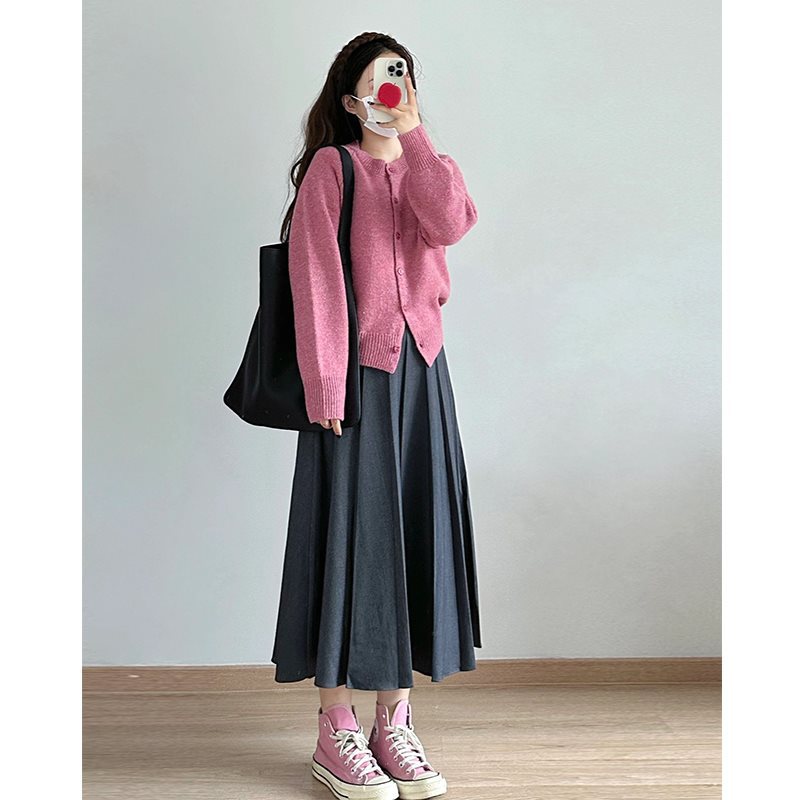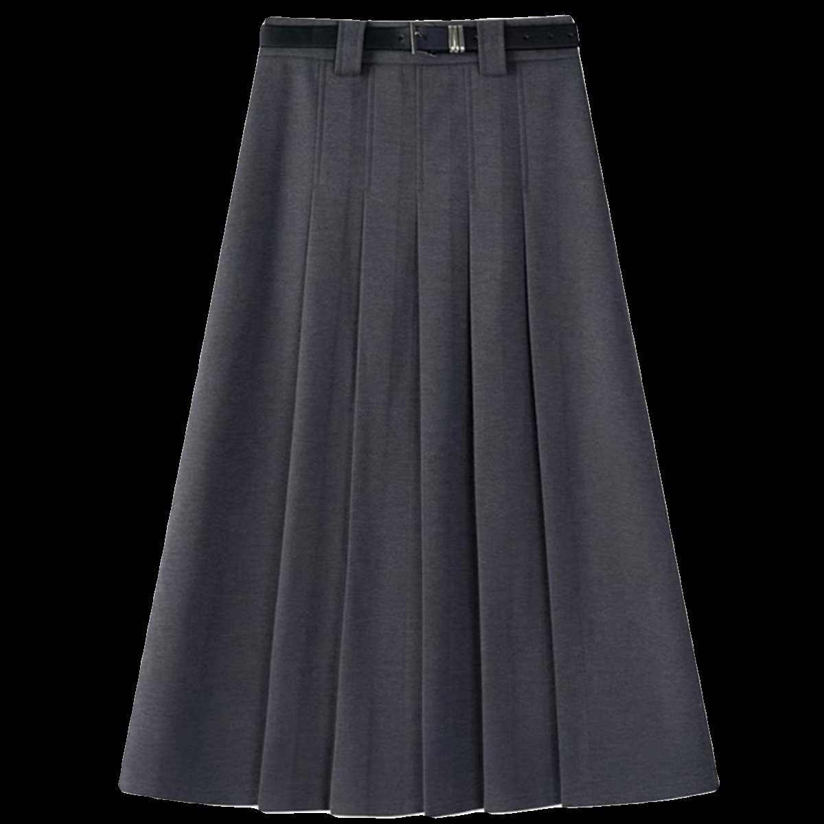 Pear-Shaped Figure Grey Suit Skirt Women’s Spring plus size chubby girl Hip Covering High Waist Mid-Length A- Line Pleated Skirt