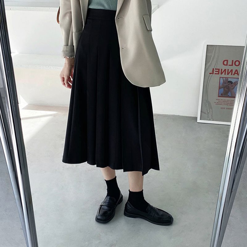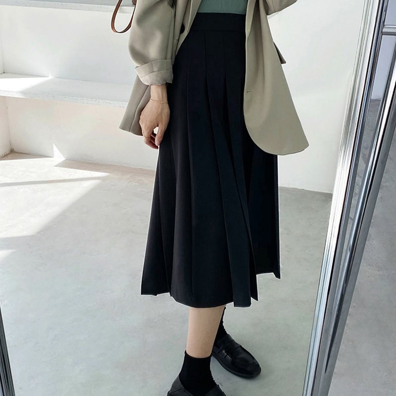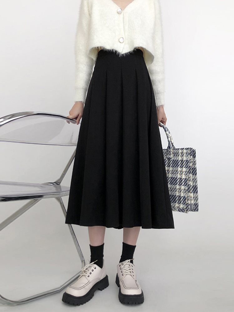 | nameOriginal | Pear-shaped Slim A- line Pleated Skirt Women's Spring plus size chubby girl High Waist Hip Covering Mid-length Suit Skirt |