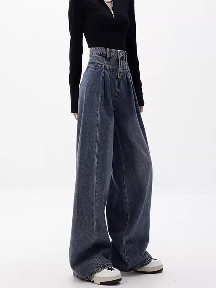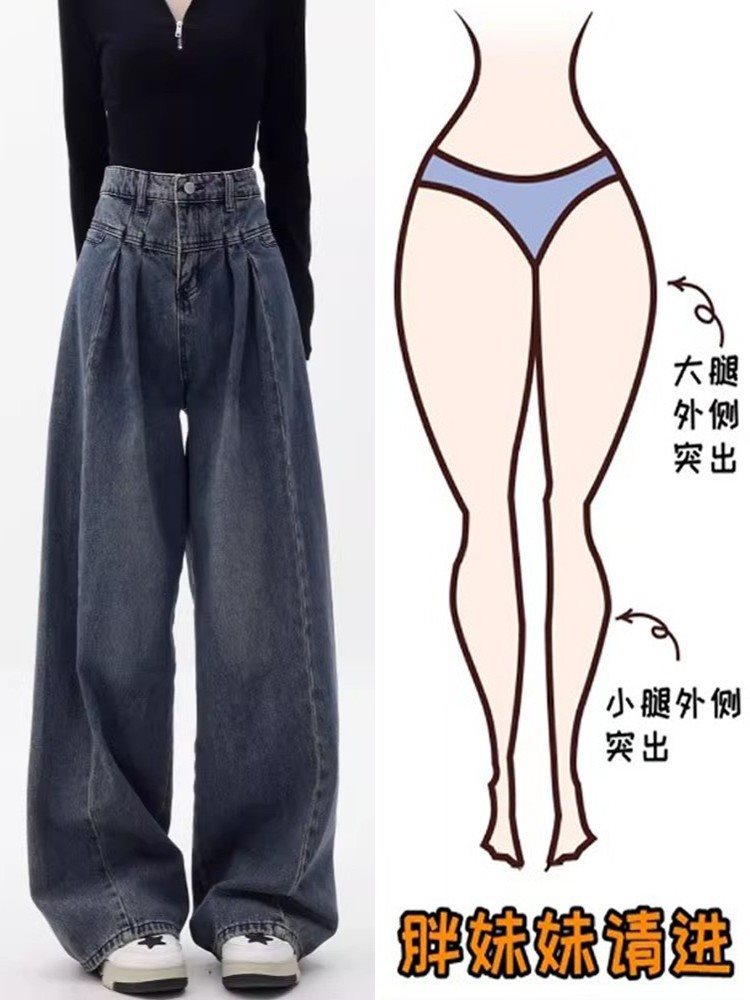 | nameOriginal | Pear-Shaped Straight-Leg Jeans Women's Spring High-Waist Hip-Covering Design Retro plus size chubby girl Wide-Leg Pants |