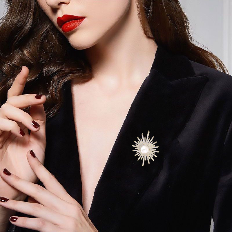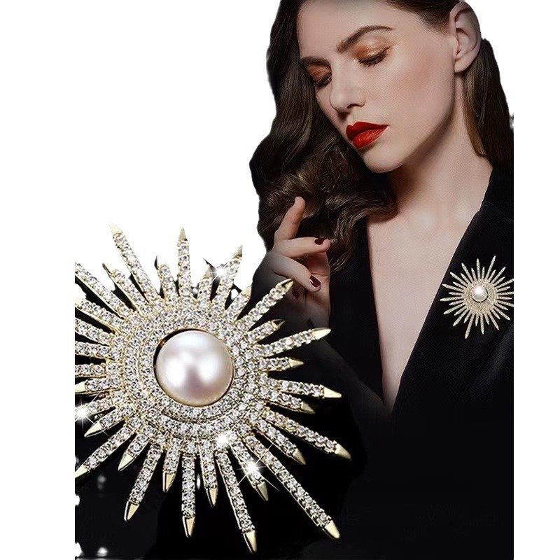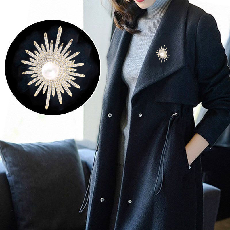 | nameOriginal | Pearl brooch women's suit corsage sunflower pin full diamond scarf buckle anti-exposure buckle fixed clothes pin |