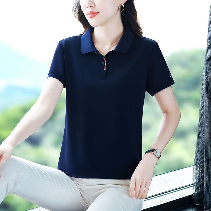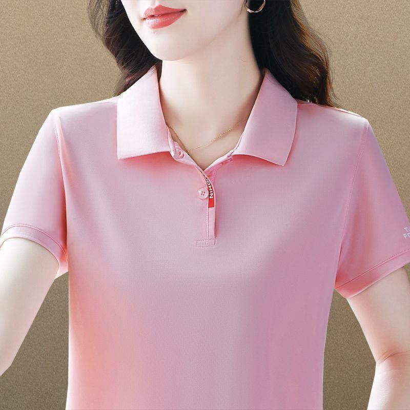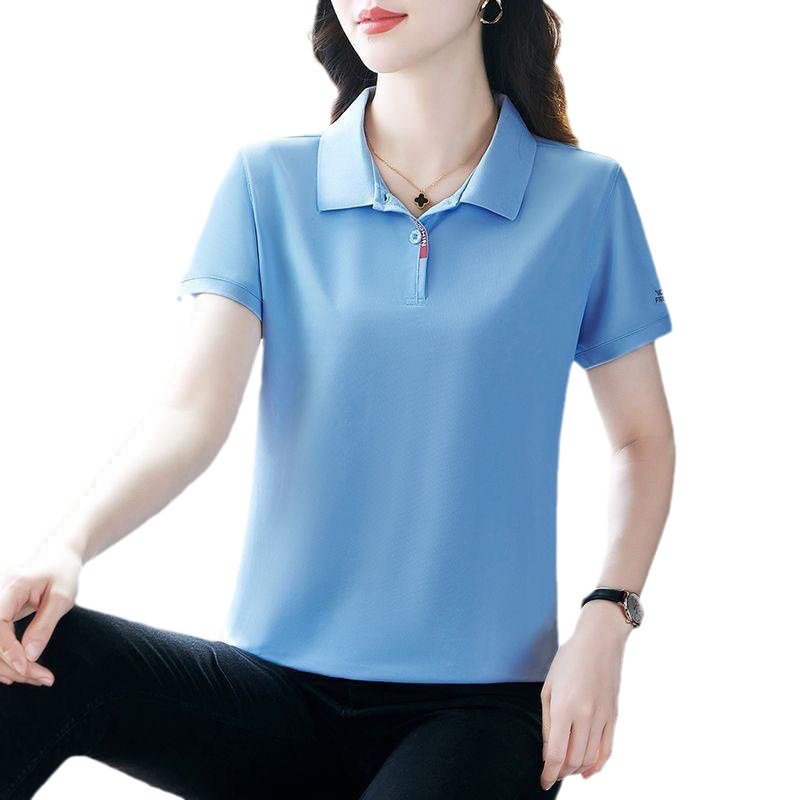 | nameOriginal | [Pearl cloth] polo shirt short-sleeved plus size printed casual small shirt summer women's T-shirt short-sleeved lapel T-shirt |
