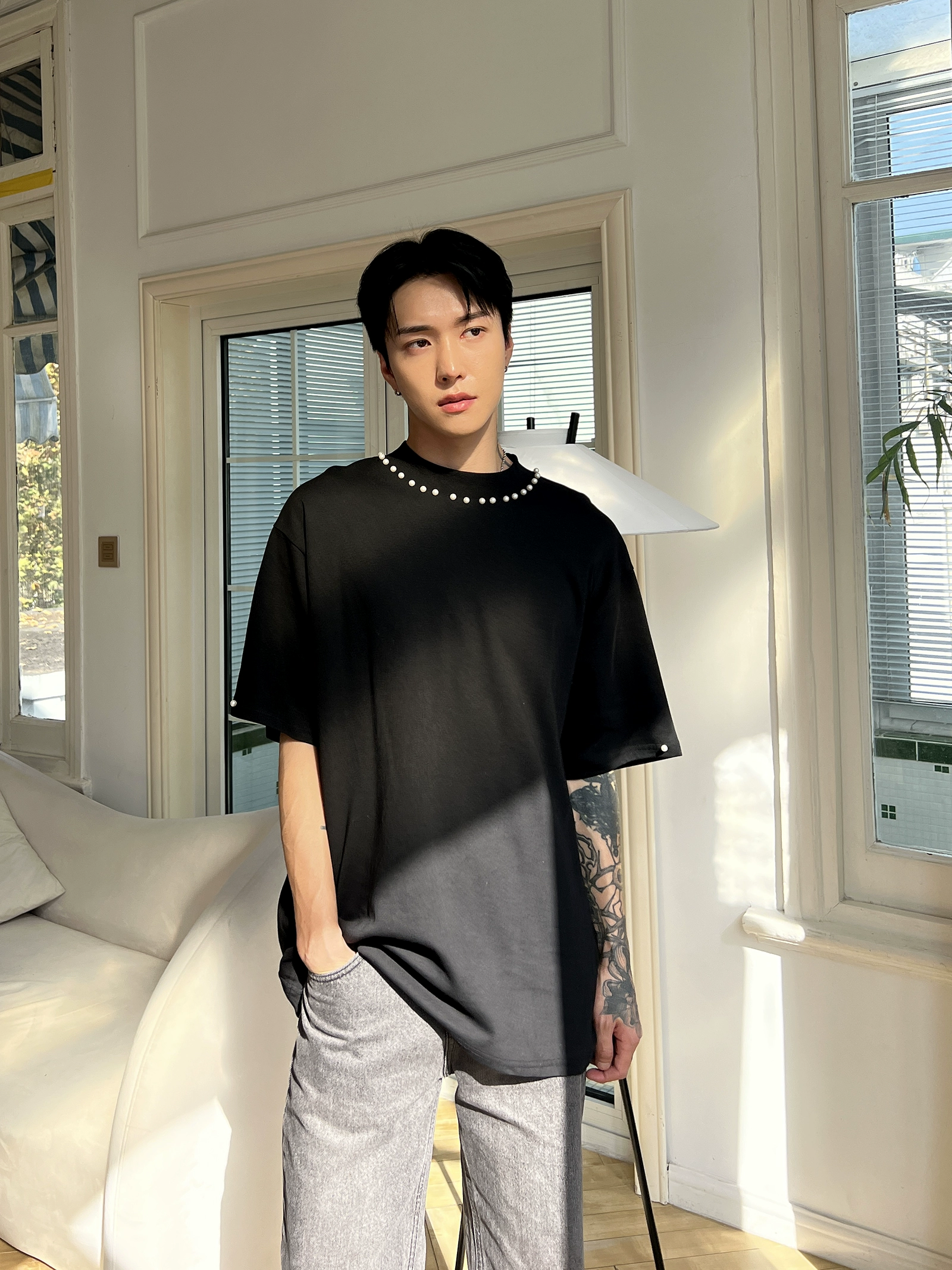 | nameOriginal | Pearl embellished half turtleneck short-sleeved niche bottoming shirt |